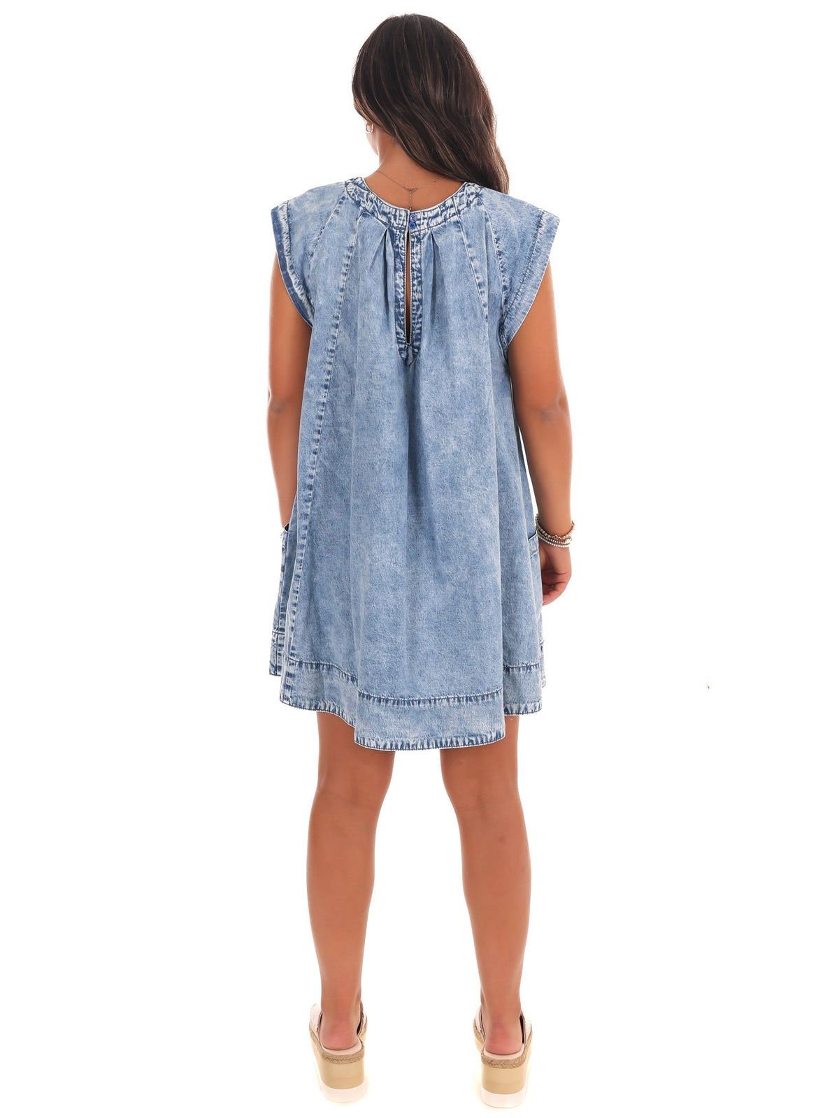 Twirl into the sunset with our Fading Sunlight Denim Babydoll Dress. This playful denim dress is perfect for any occasion and will have you feeling carefree and stylish. Say hello to your new favorite dress!