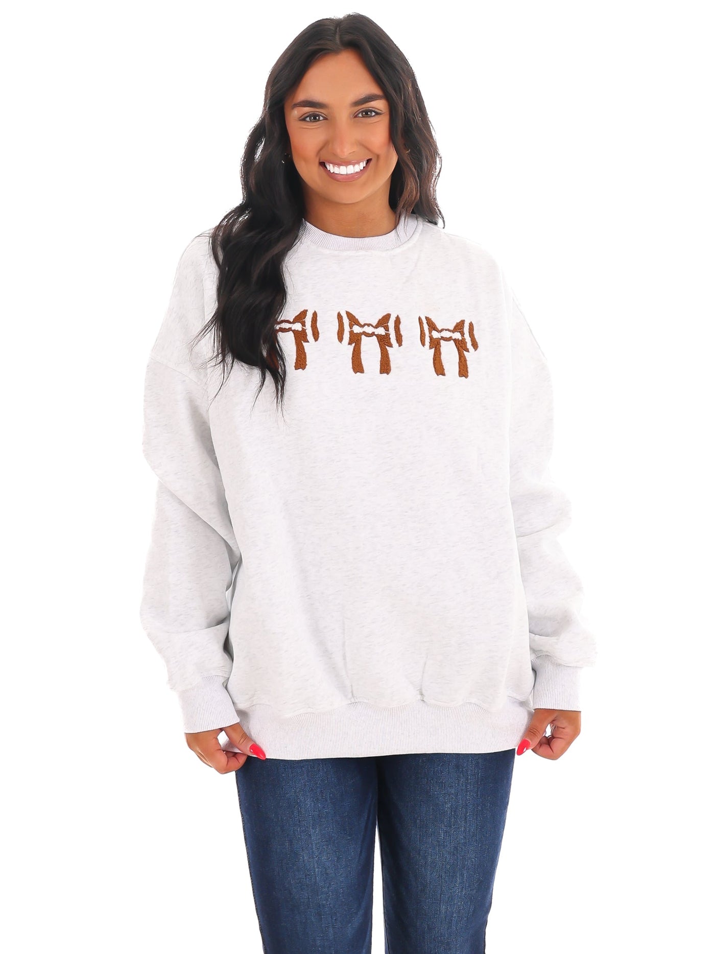 Football Bows Embroider Sweatshirt - Pearl Gray / S