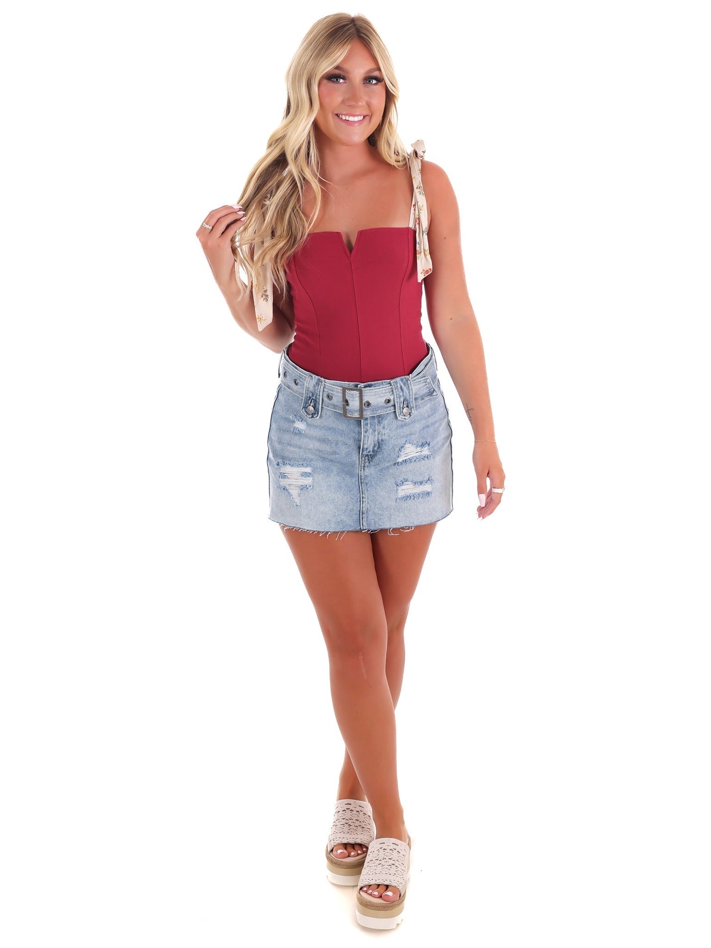 Forever-timeless bodysuit featured in a formfitting silhouette with feminine shoulder ties and flattering seam detailing.