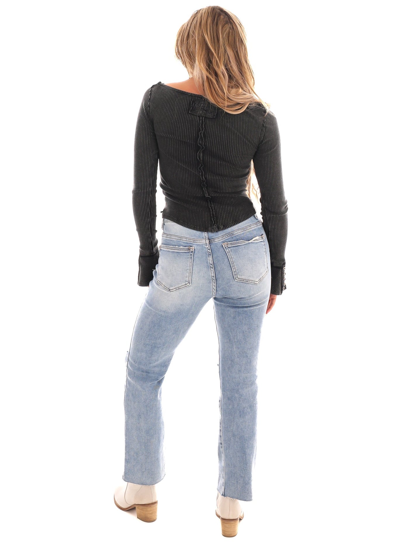 So essential from Free People's We The Free collection, this long-sleeve is featured in a ribbed fabrication and slim-fitting silhouette with bell-shaped sleeves and exposed seams throughout.