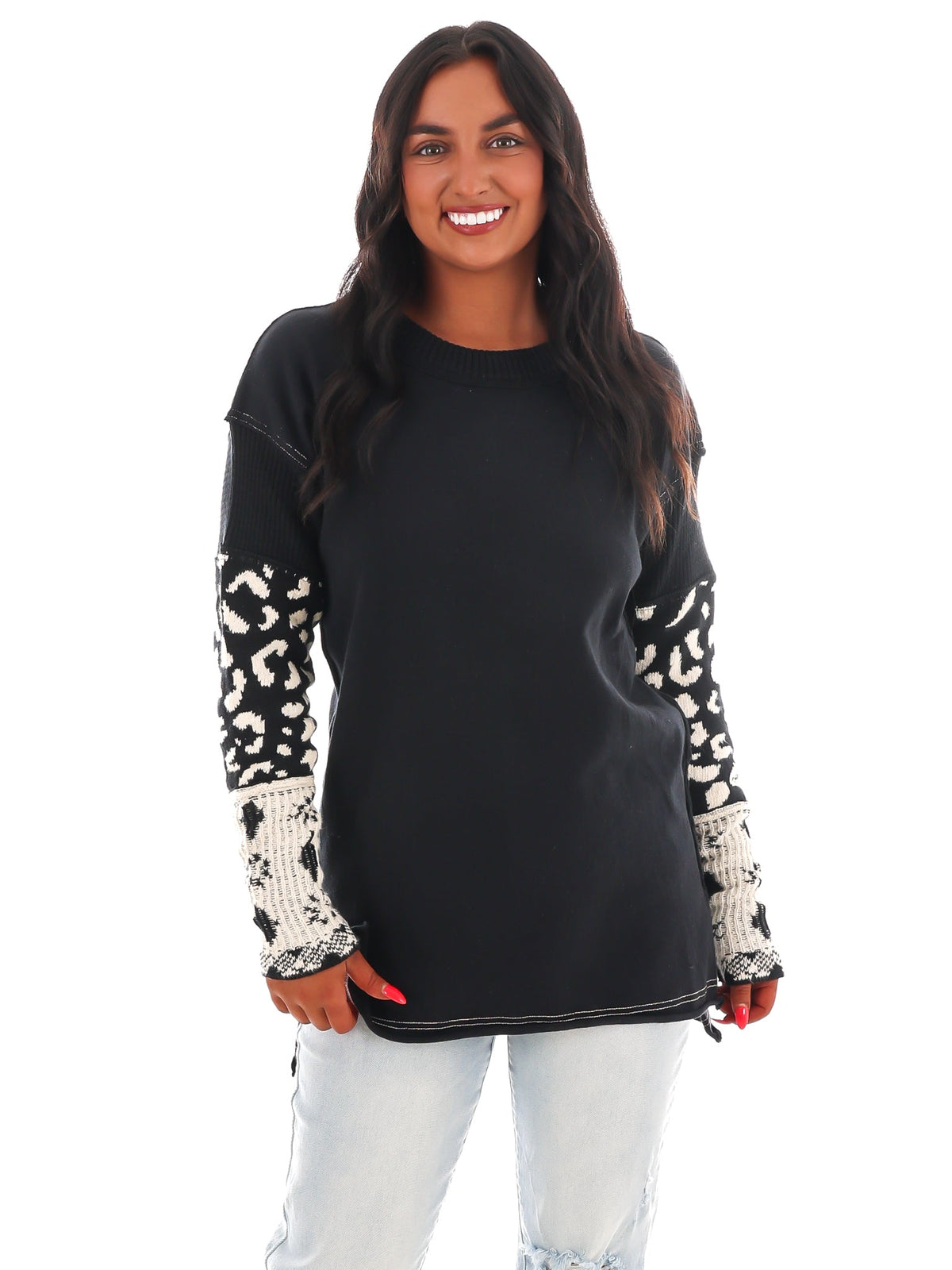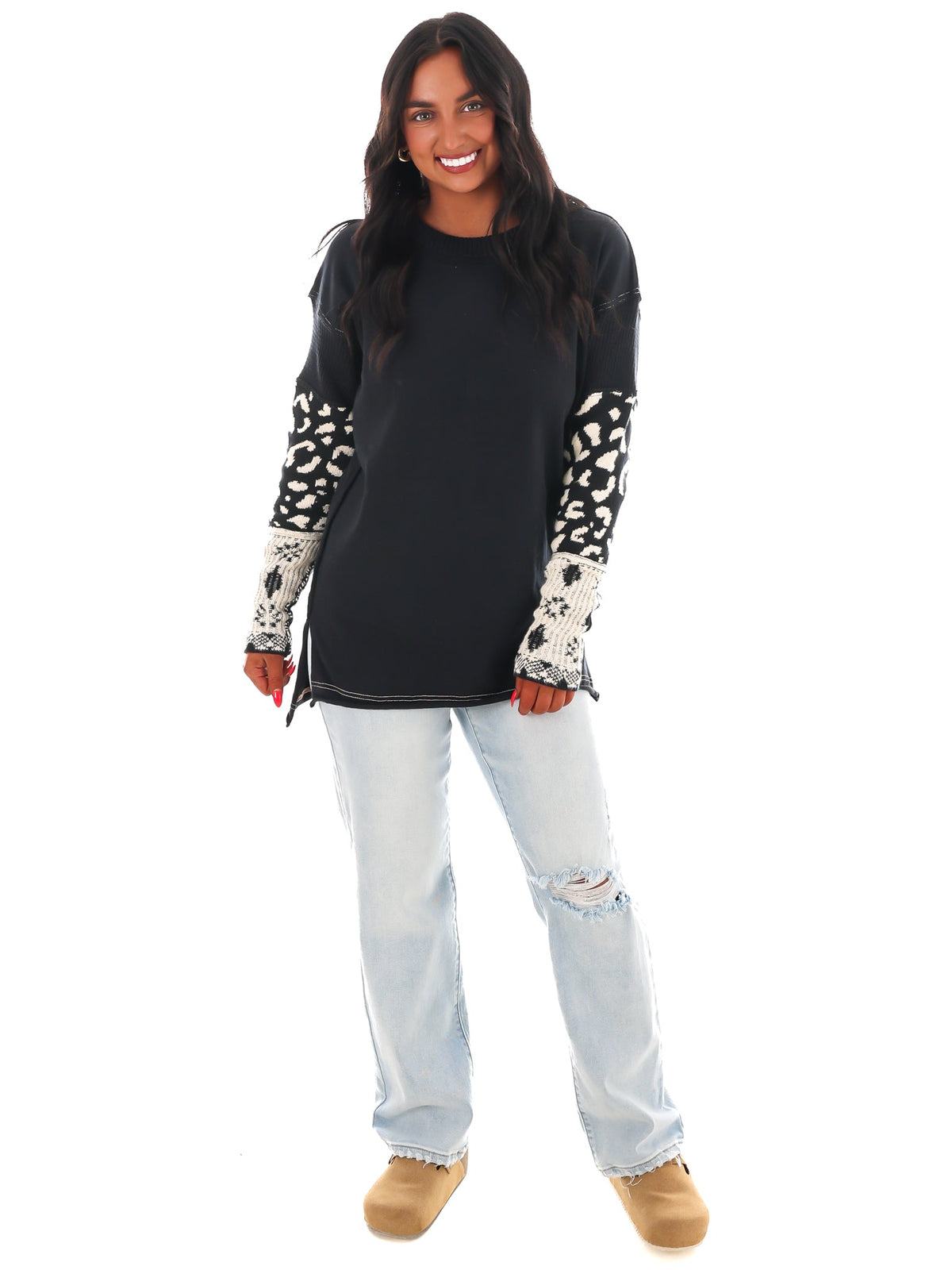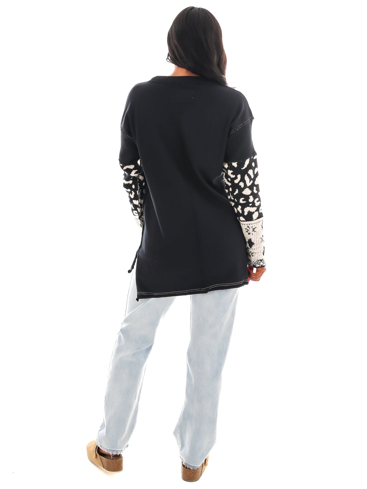 Take a walk on the wild side. This one-of-a-kind top from Free People's We The Free collection features a soft fabrication and slightly oversized fit with contrast sleeves and printed cuffs.