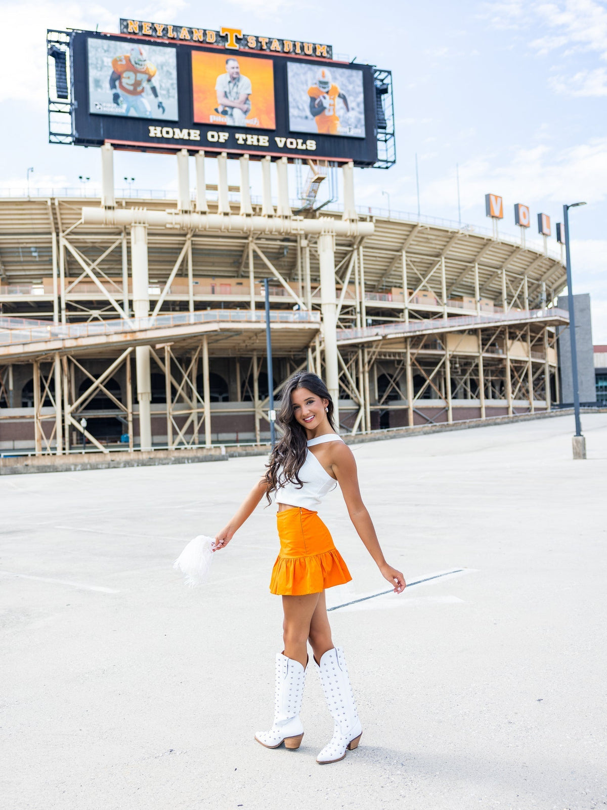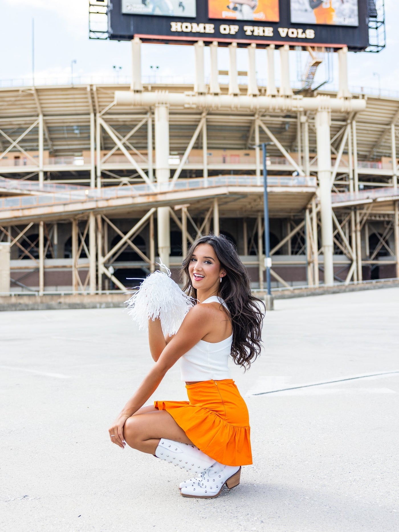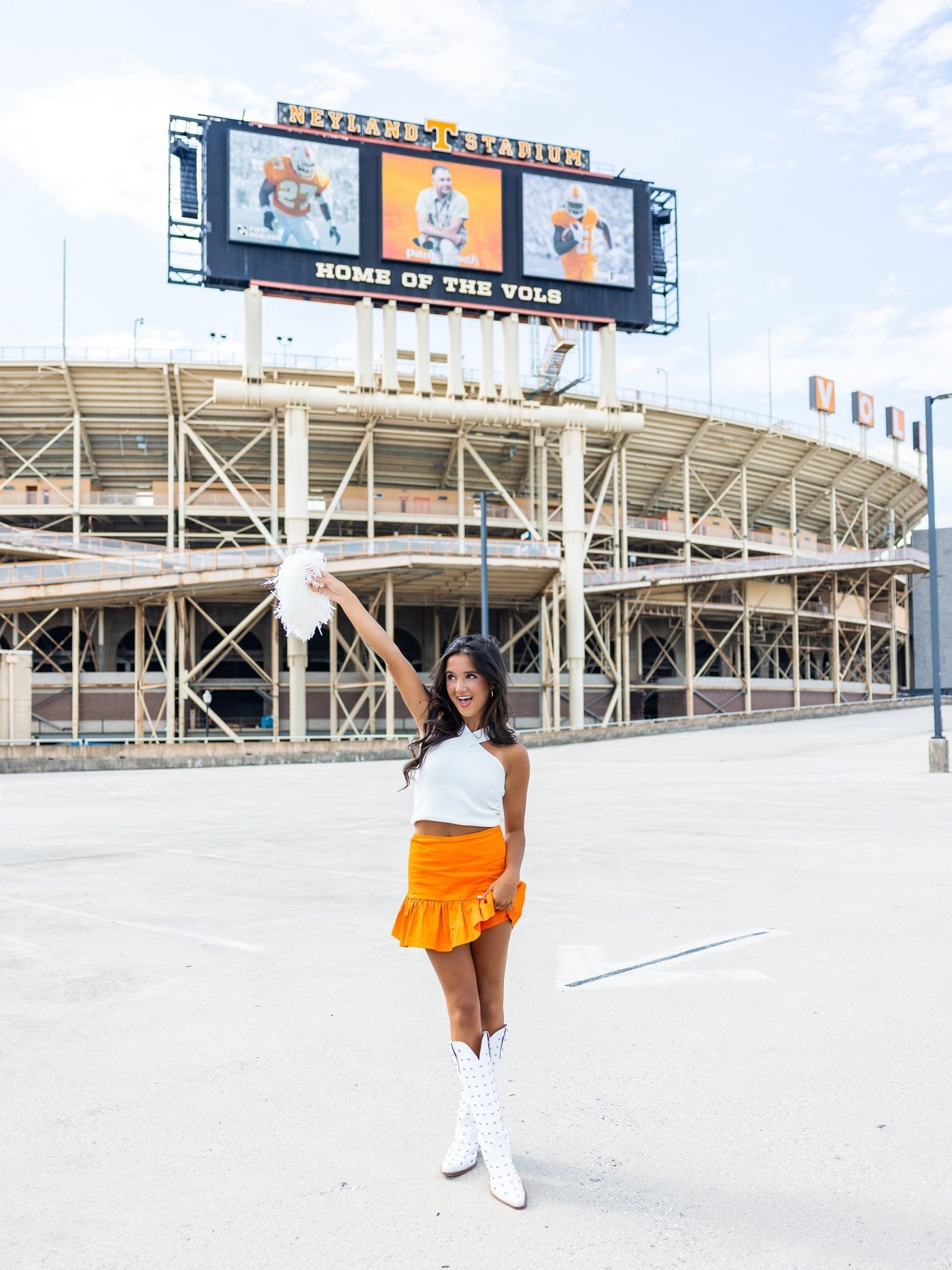 Show your Tennessee spirit with our Game Plan Halter Crop Top – a twist on the classic bodycon silhouette! This ribbed top is cropped for an updated take on fanwear that's sure to make a touchdown! Go Vols!!