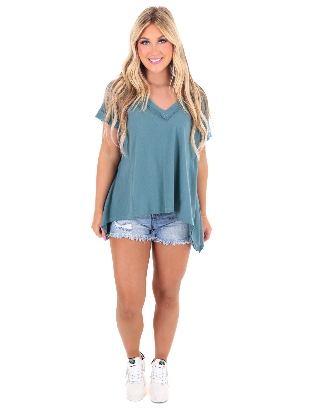 Get to know this top and it'll be your new BFF! Its v-neckline and highlow hemline add a touch of originality and fun to your wardrobe. Say yes to versatile comfort and style (and no to boring tops). Meet your new favorite piece!