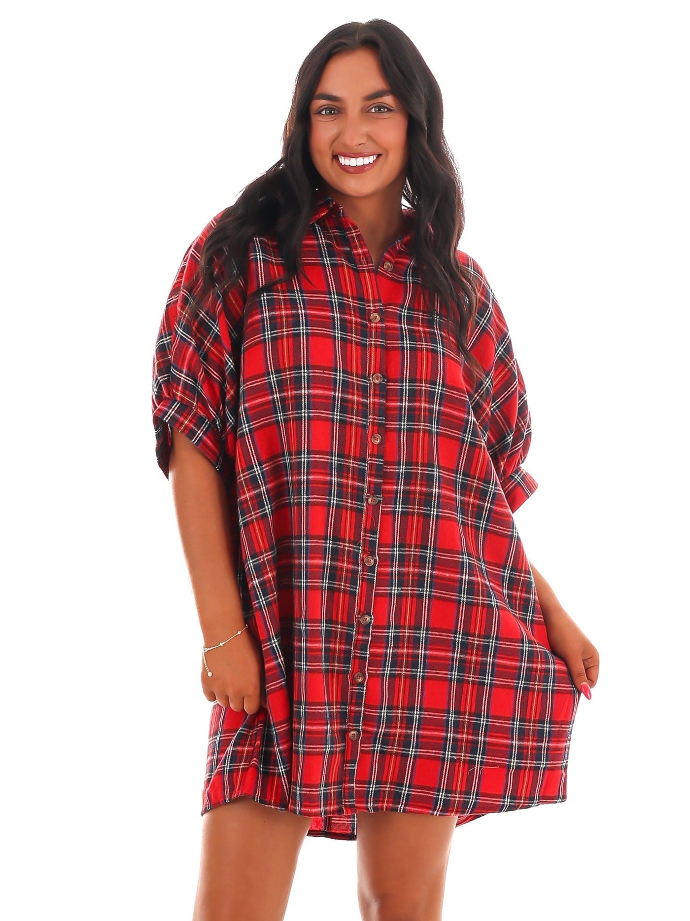 Get the best of both worlds with our Need it All Plaid Shirt Dress! This oversized shirt dress features a button down design and a trendy plaid pattern. Perfect for a casual day out or a fun night in. Dress it up or down, the possibilities are endless.