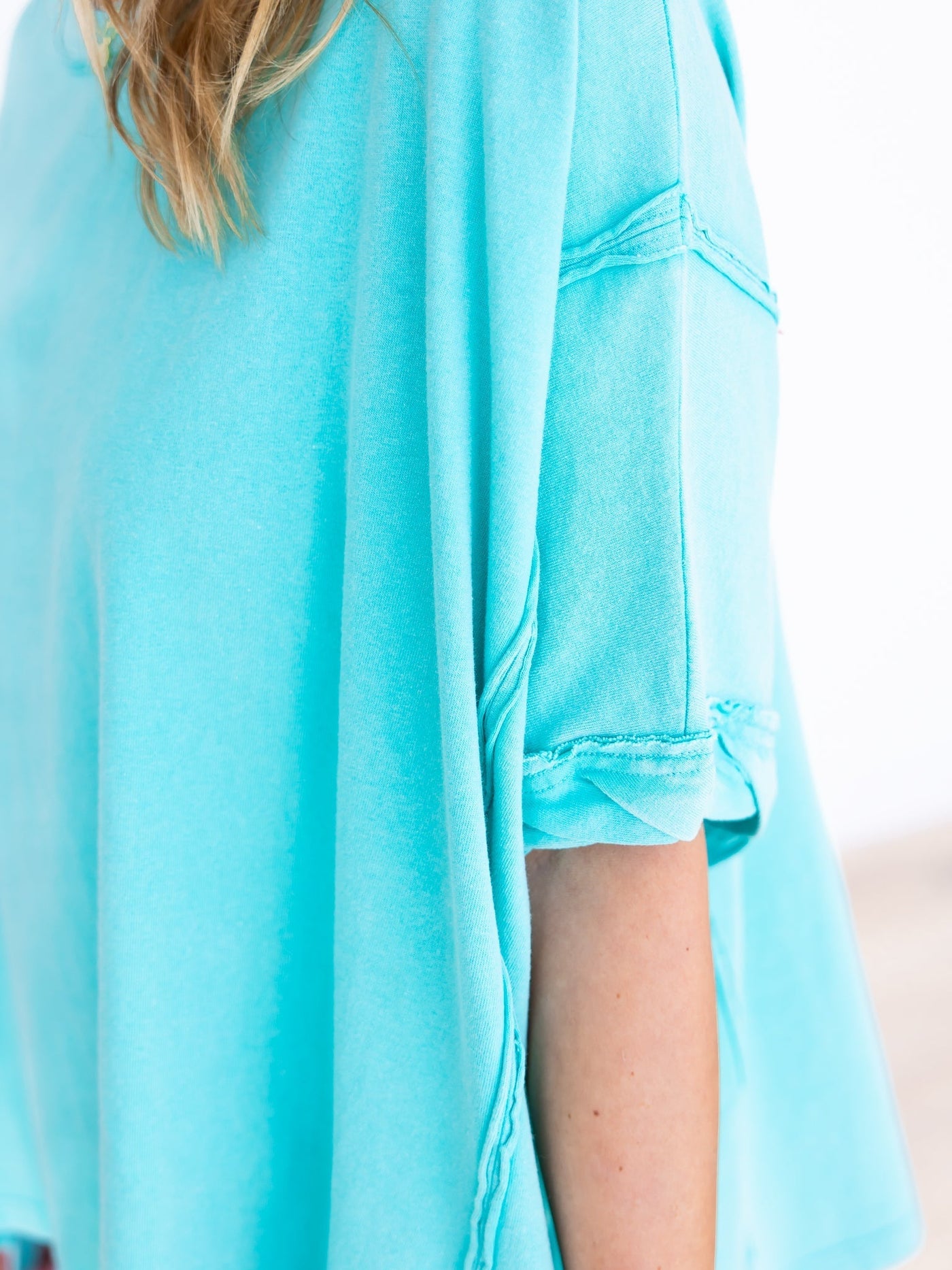 Never forget how comfortable and stylish you can be with our loose fit top! The asymmetric high-low cut, round neck, and short sleeves add a touch of uniqueness to this washed piece. Say goodbye to feeling constricted and hello to your new favorite loose fit top!