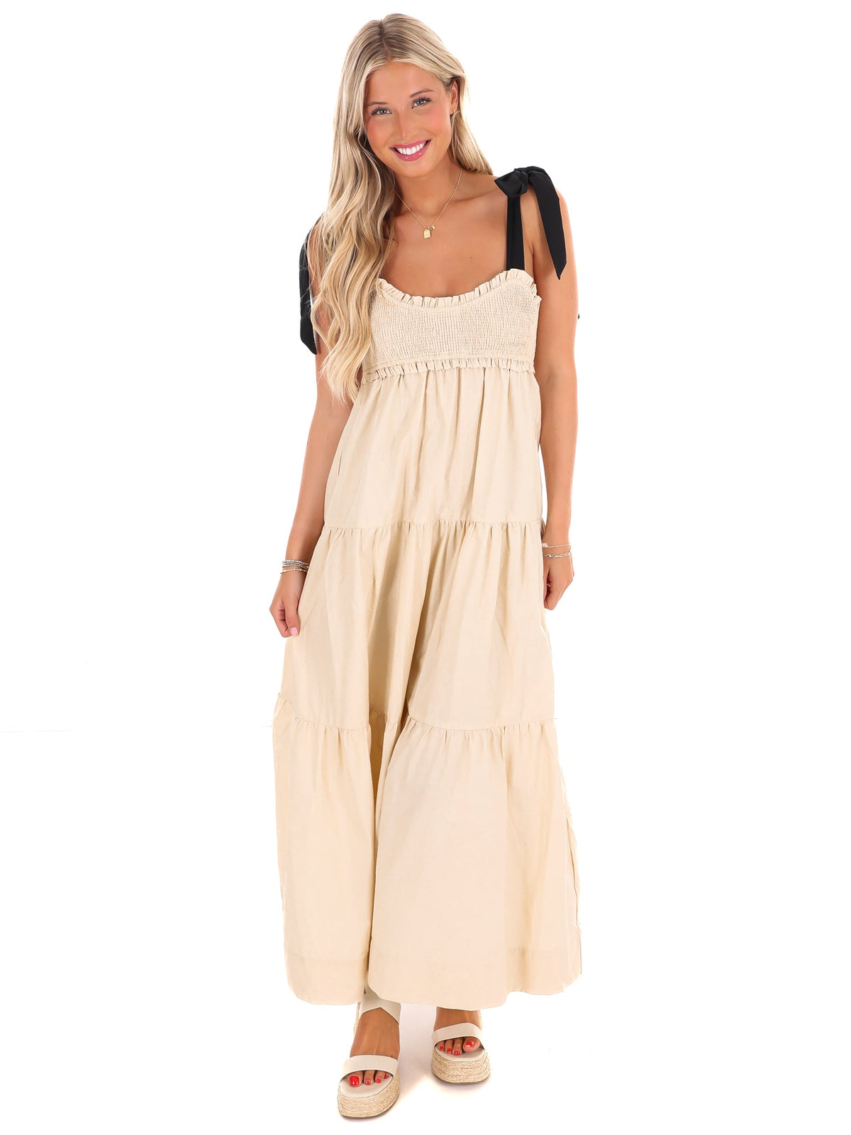 Get ready to turn heads and feel fabulous in our Next to You Maxi Dress. With a playful shoulder tie and smocked design, this maxi dress is both stylish and comfortable. Perfect for any occasion, you'll want to wear it everywhere! (Seriously, it's that good.)