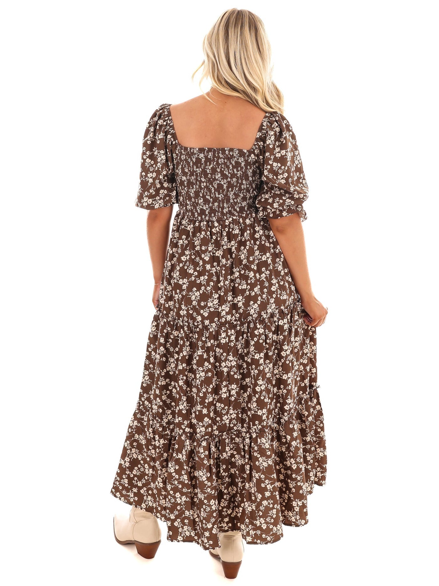 Nice to Know You Floral Midi Dress - Cream/Black / S