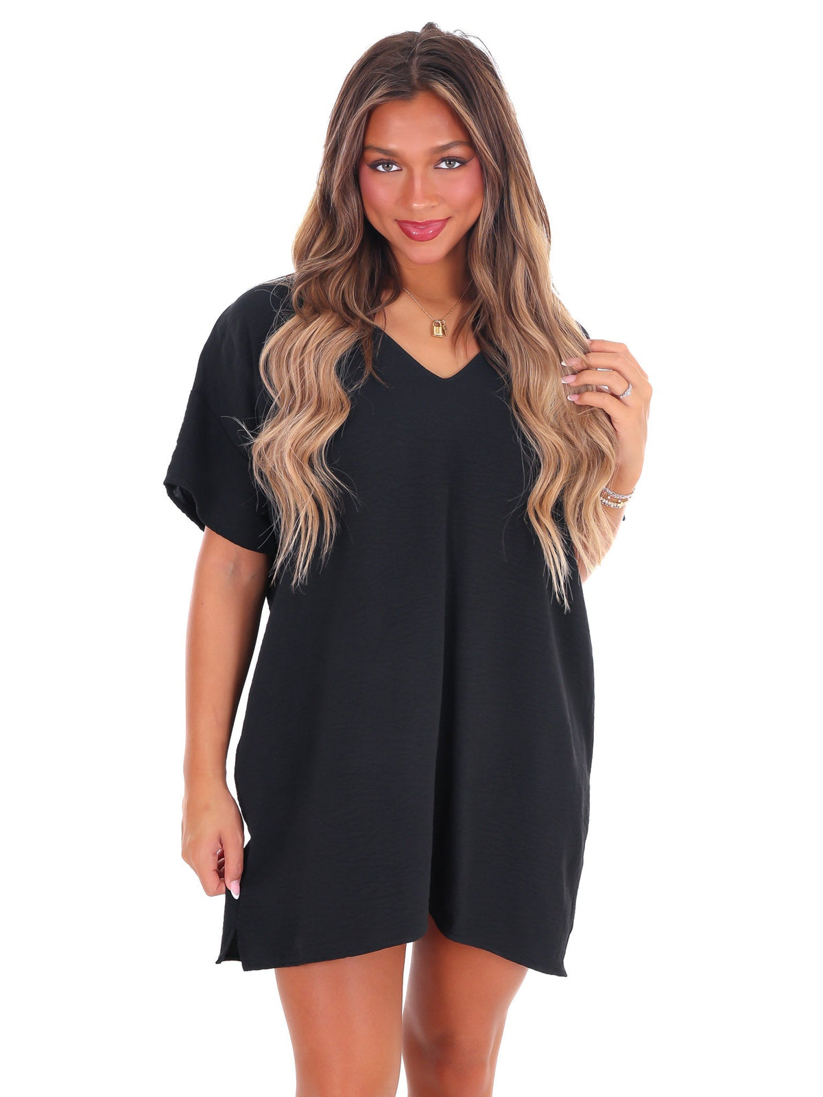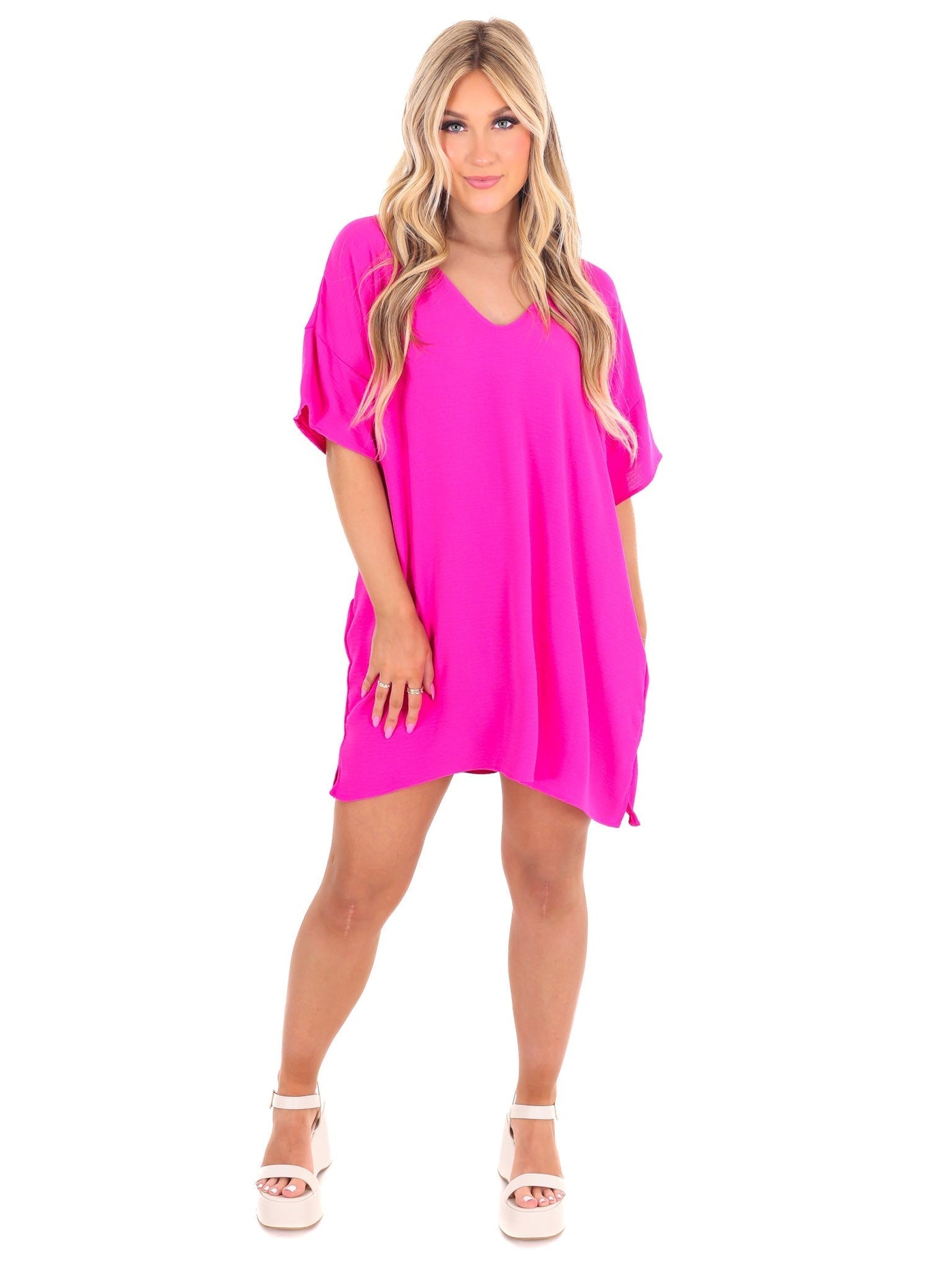 Be stylish without trying too hard in our One that Got Away Oversized Dress. This V-neck short sleeve T-shirt dress features an oversized fit and side bobble slit details. Made from solid non-stretch fabric, it's both comfortable and chic. The perfect dress for those who don't take themselves too seriously (or want to look like they don't). Don't let this one get away!