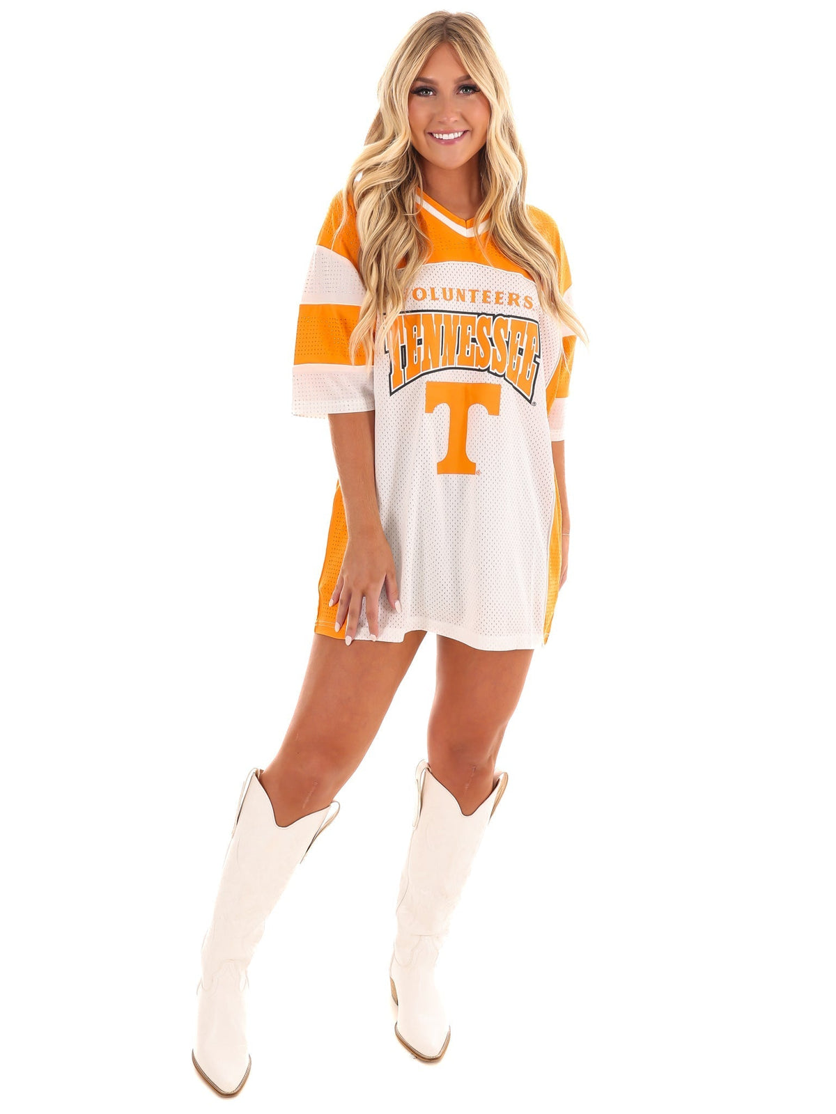 Rhinestone Overlay V-Neck Football Jersey - White/Orange / XS