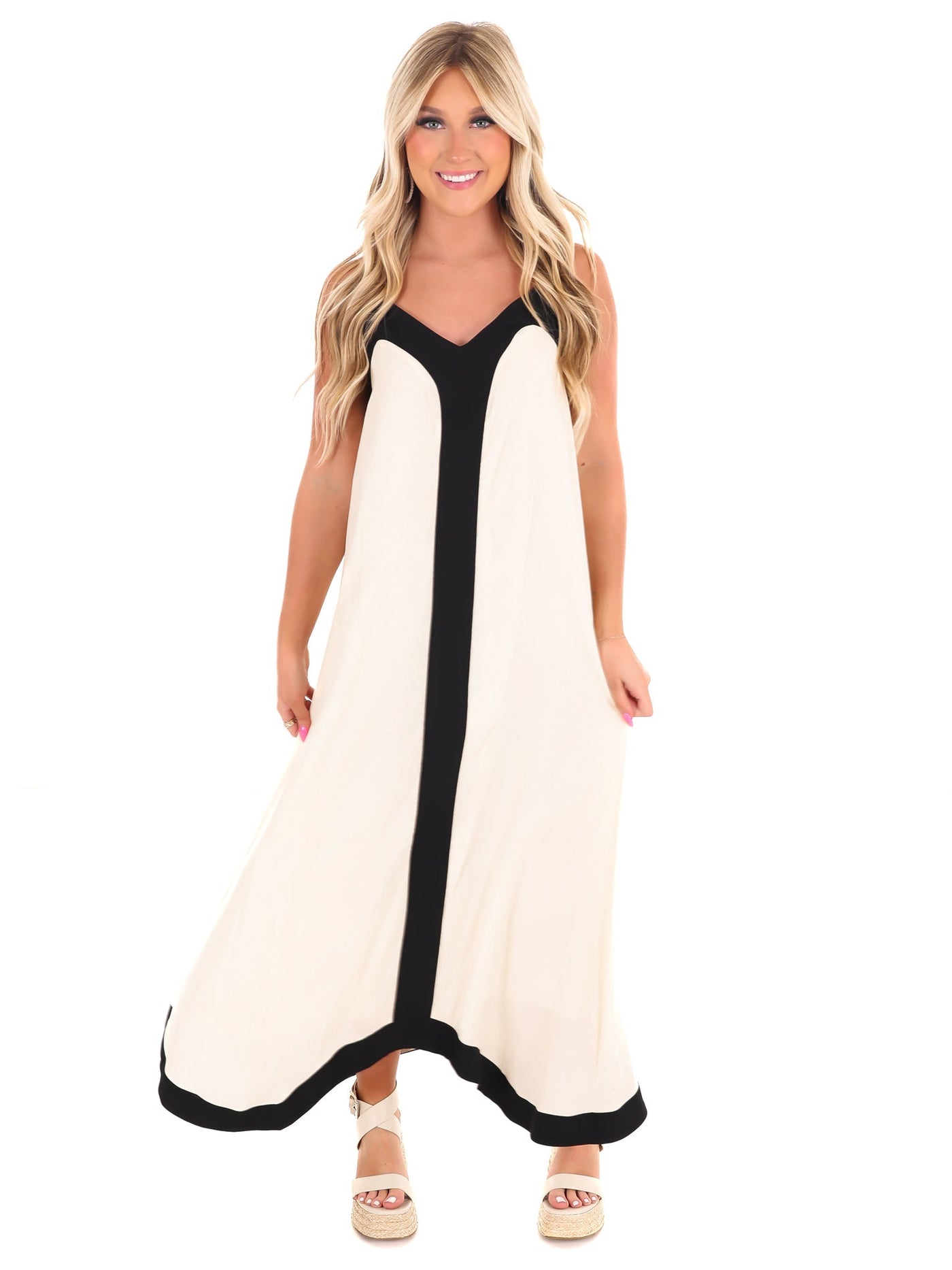 See You Smile Asymmetric Maxi Dress - Cream/Black / S