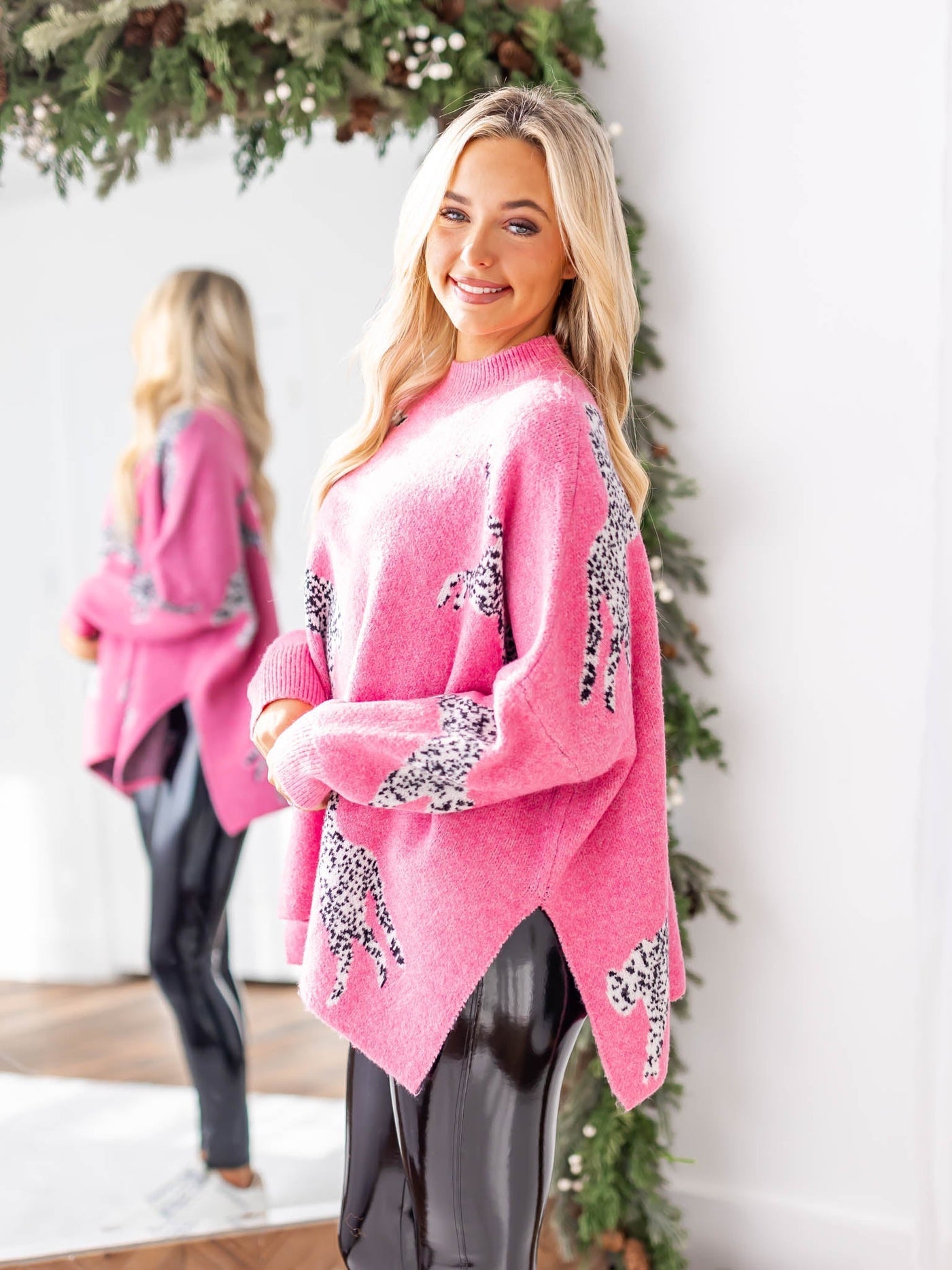 Feel fierce in this wild Seeing Spots Oversized Sweater! The cheetah pattern is purr-fect for a night out on the town, and the mock neckline and side slits add pizzazz. Not to mention, it’s oversized for maximum comfort and style. Unleash your wild side!