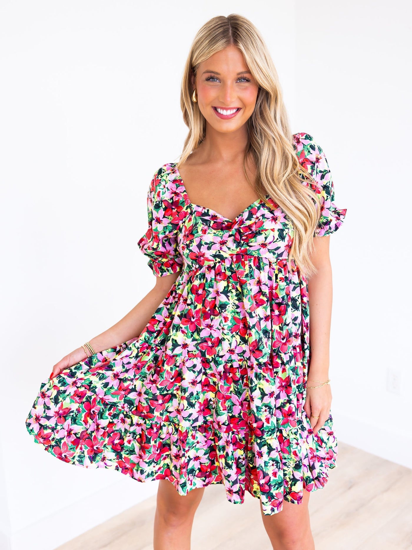 Get ready to bloom in style with our Sunday Service Floral Mini Dress! This playful dress features puff sleeves and a beautiful floral print that will make you stand out at any event. The tiered design adds a unique touch, making this dress perfect for any occasion. (Flowers and fashion? A match made in heaven!)