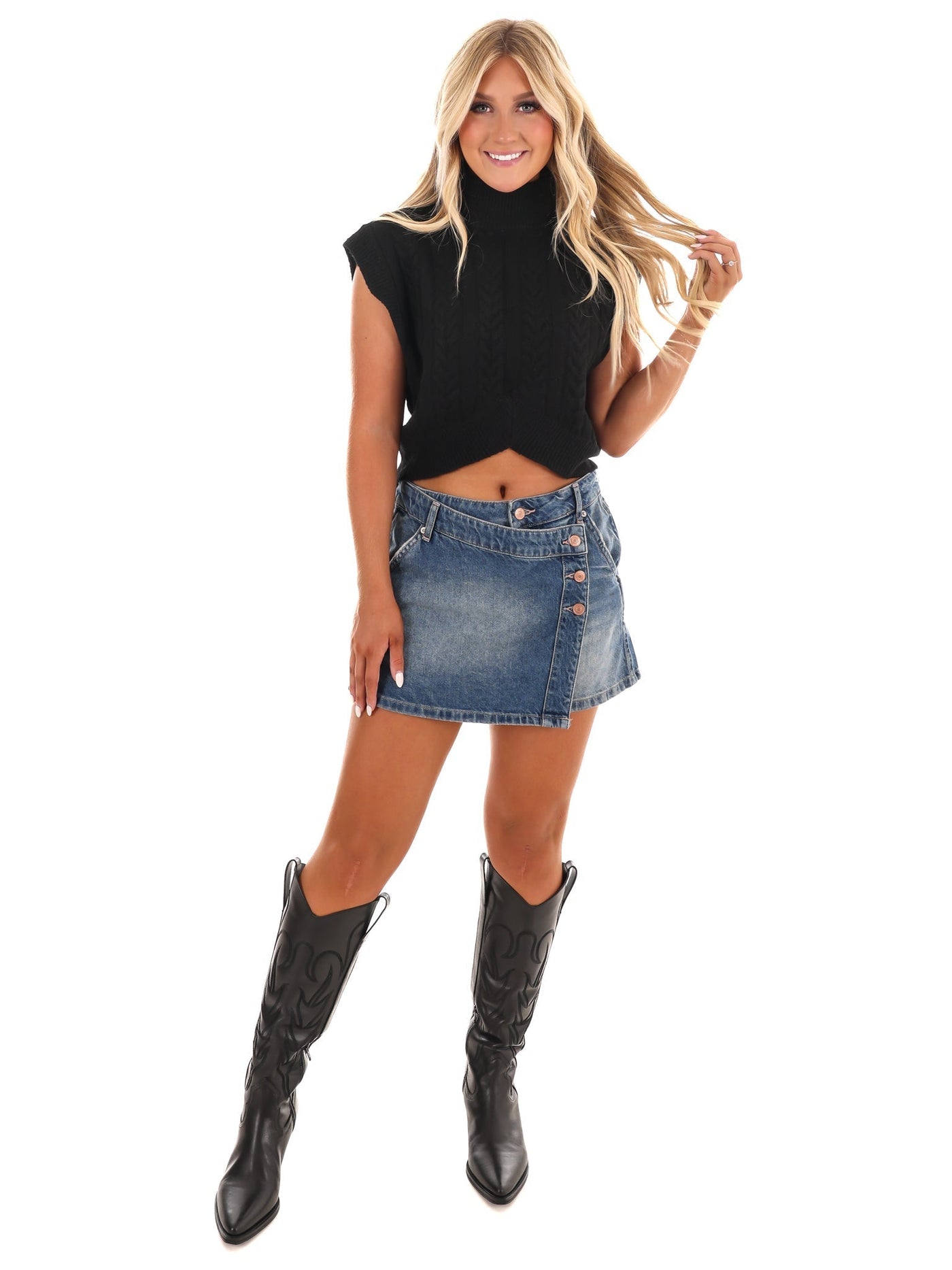Get the perfect textured look with our Textured Perfection Mock Neck Sweater! Featuring a ribbed mock neckline and cap sleeves, this sweater is slightly fitted and cropped for a flattering and trendy style. The uneven ribbed bottom adds a unique touch to this short sleeve top.