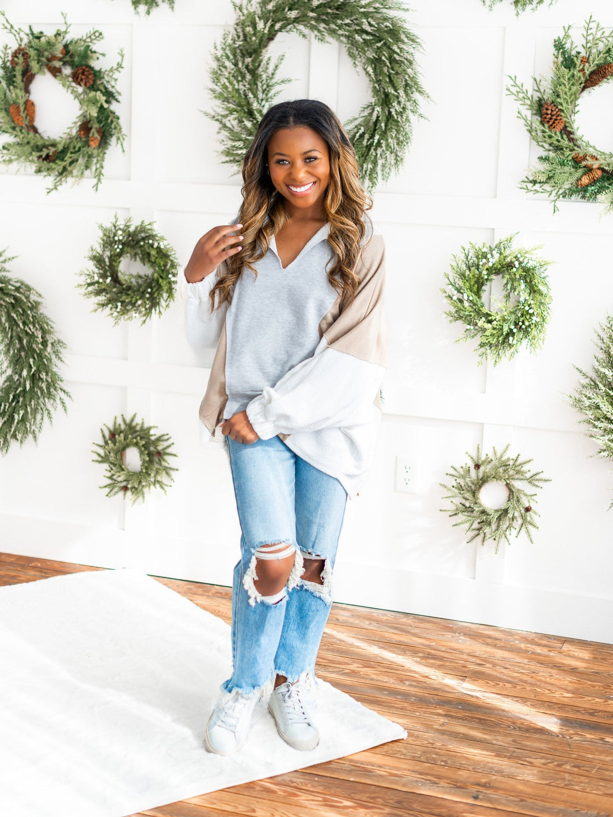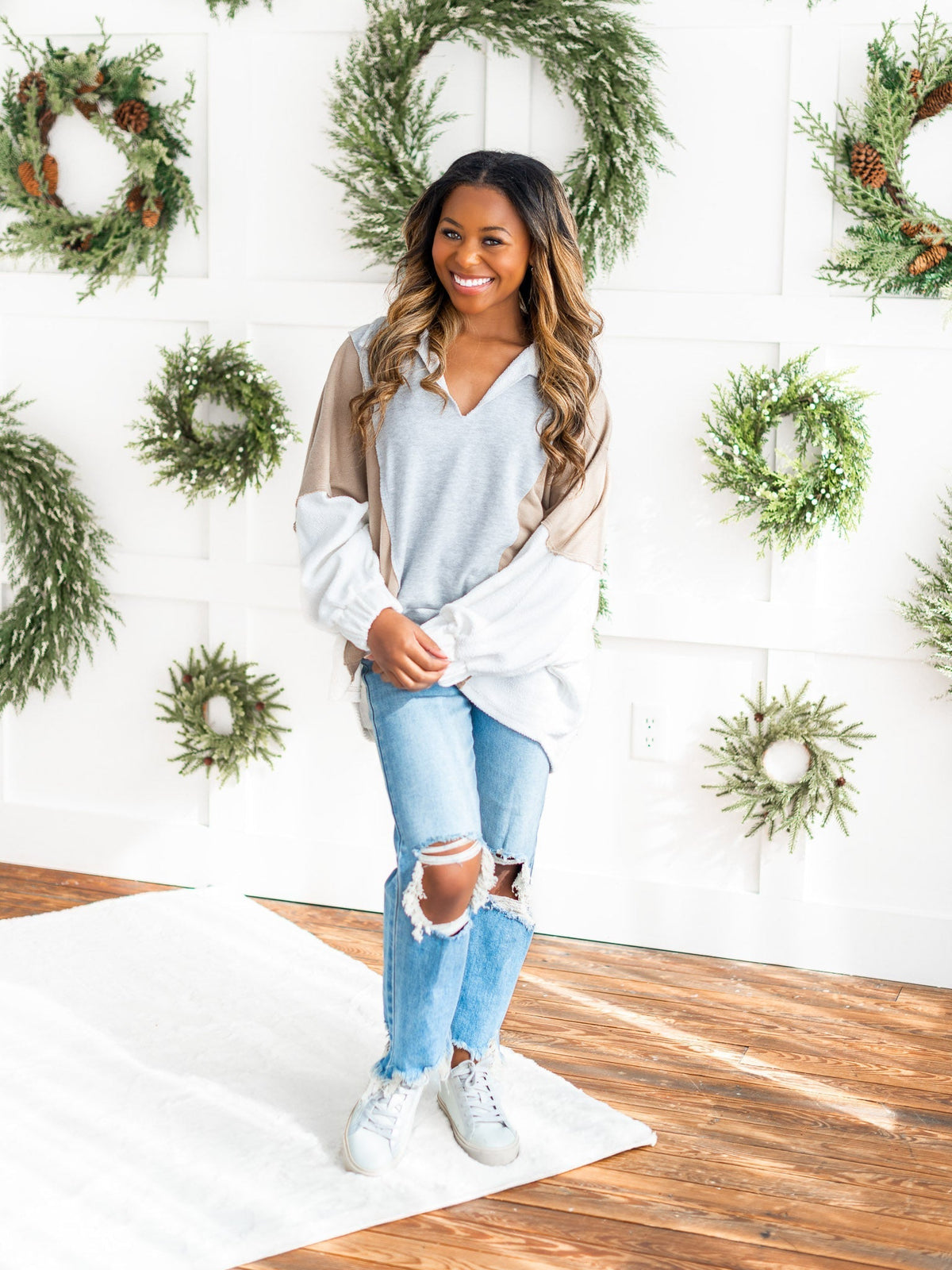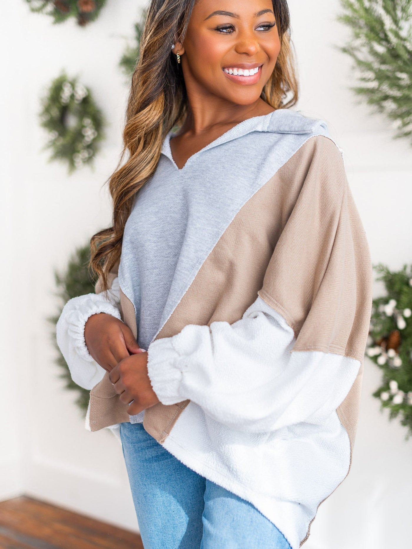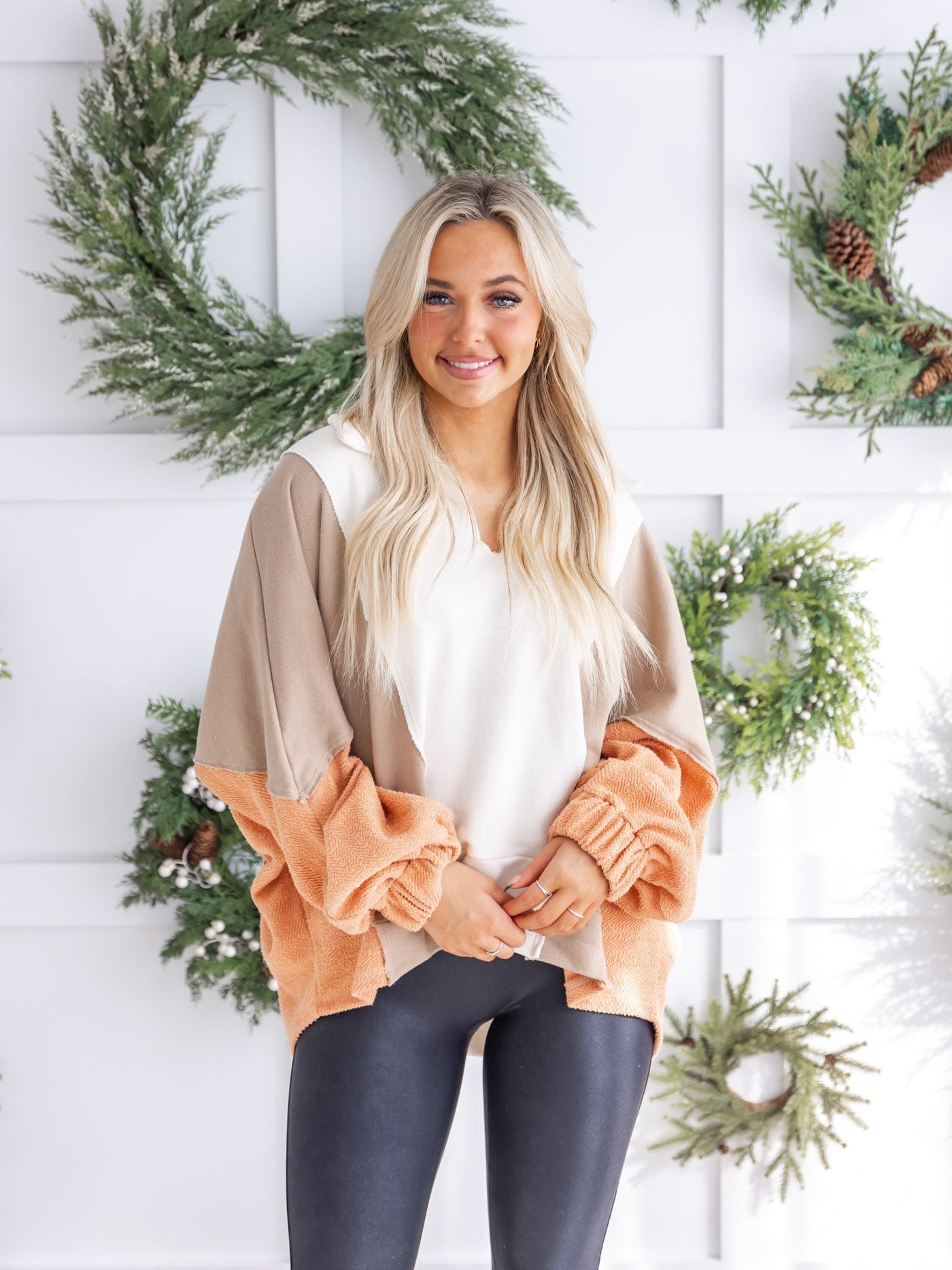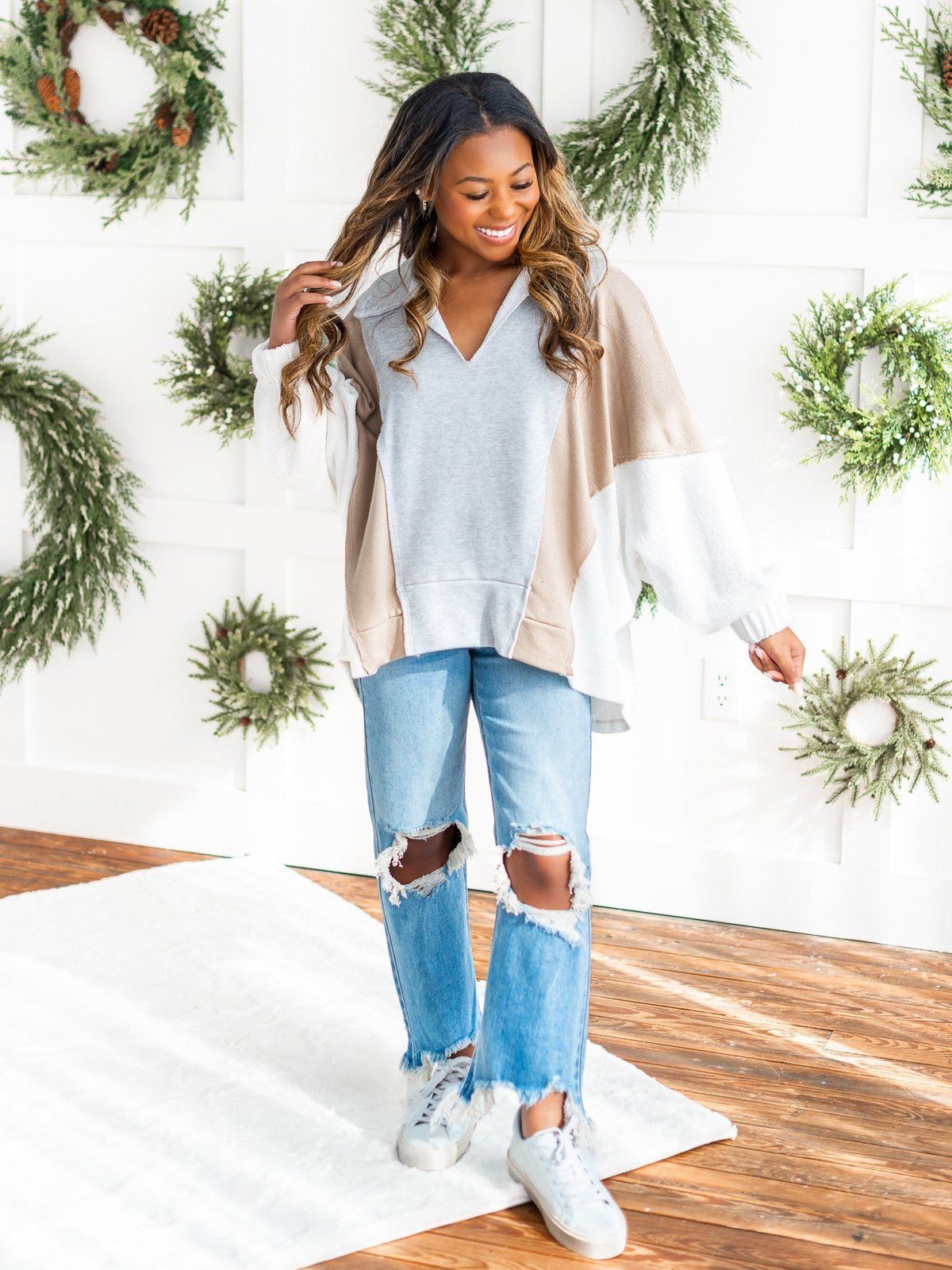 From the living room to the street, this Unbothered Oversized Top will keep you looking effortless and cool - no matter the destination. A V-neckline, collared neck, colorblock design, and raw edge details come together for a top that's a perfect balance of chill-but-still-put-together. So slip it on and get ready to tackle your day, without breaking a sweat!