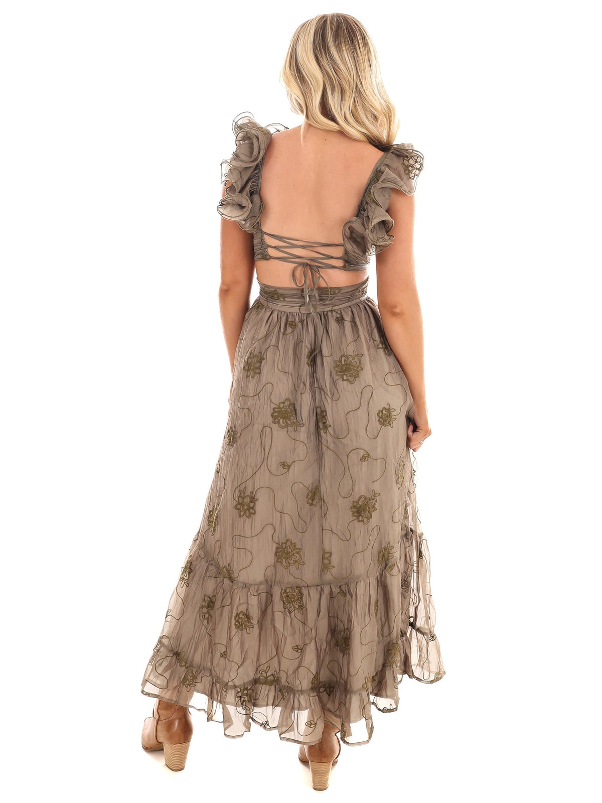 A Vision in Floral Embroidered Maxi Dress - Brown / S