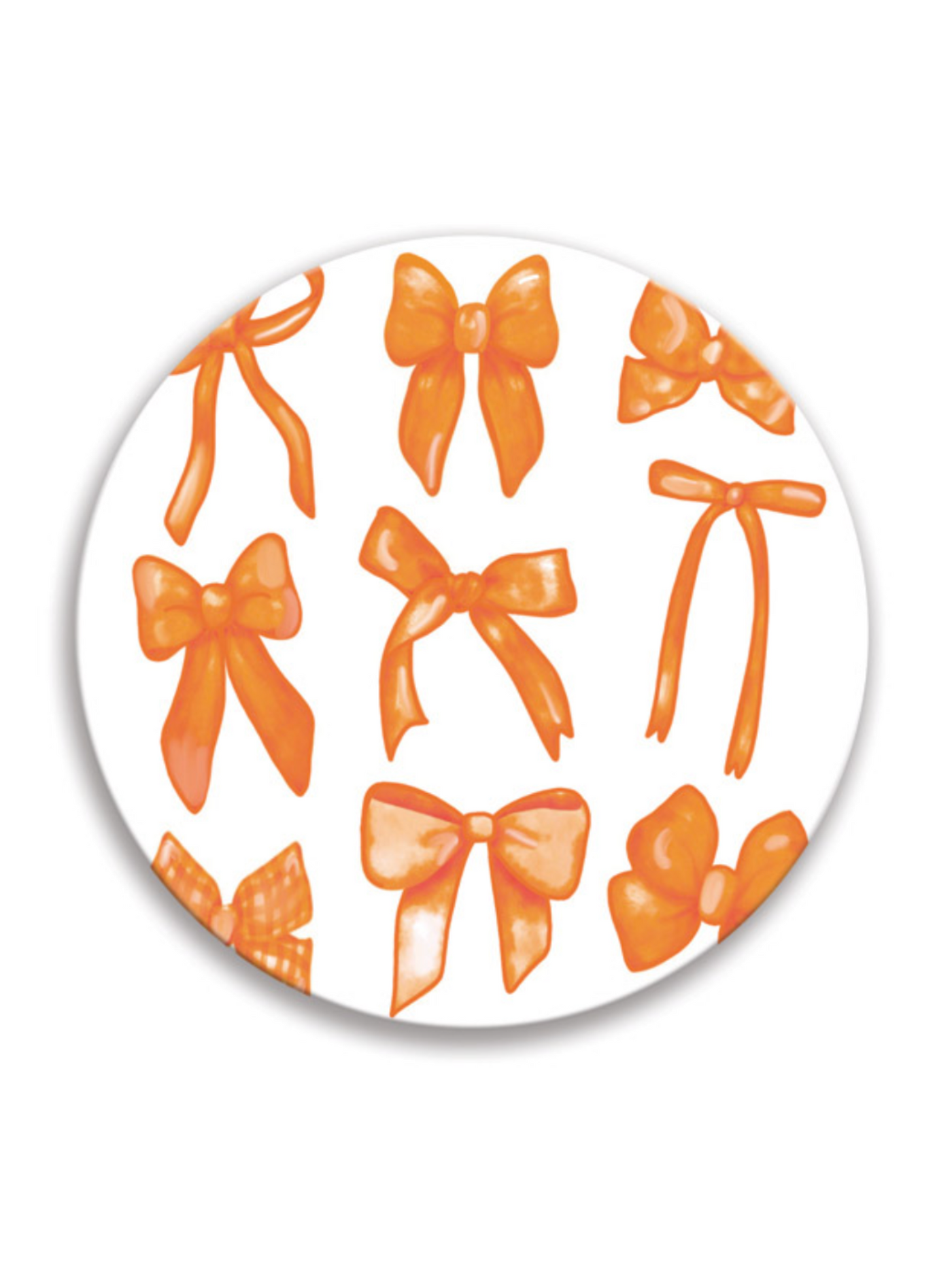 Add a pop of color to your outfit with our Bow Collage 3" Button! This unique design features a collage of orange bows on a white button, perfect for showcasing your playful and quirky style. Part of our Tennessee Gameday Collection. Go Vols!
