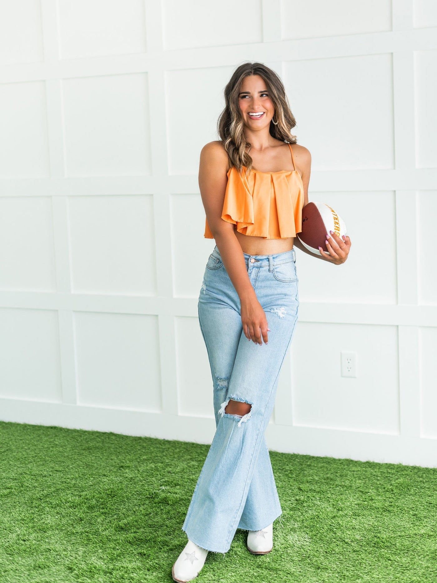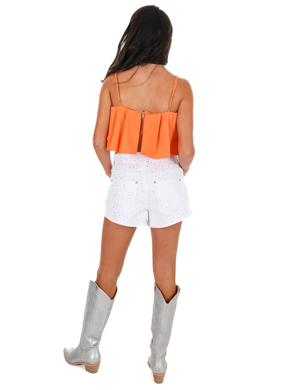 Sport your Vols pride in style with this unique pleated crop top! From the Champions Play Here collection, this top is the perfect way to show your team spirit: its spaghetti straps and zipper closure at the back give it a sporty, modern look. Go Big Orange and go in style!