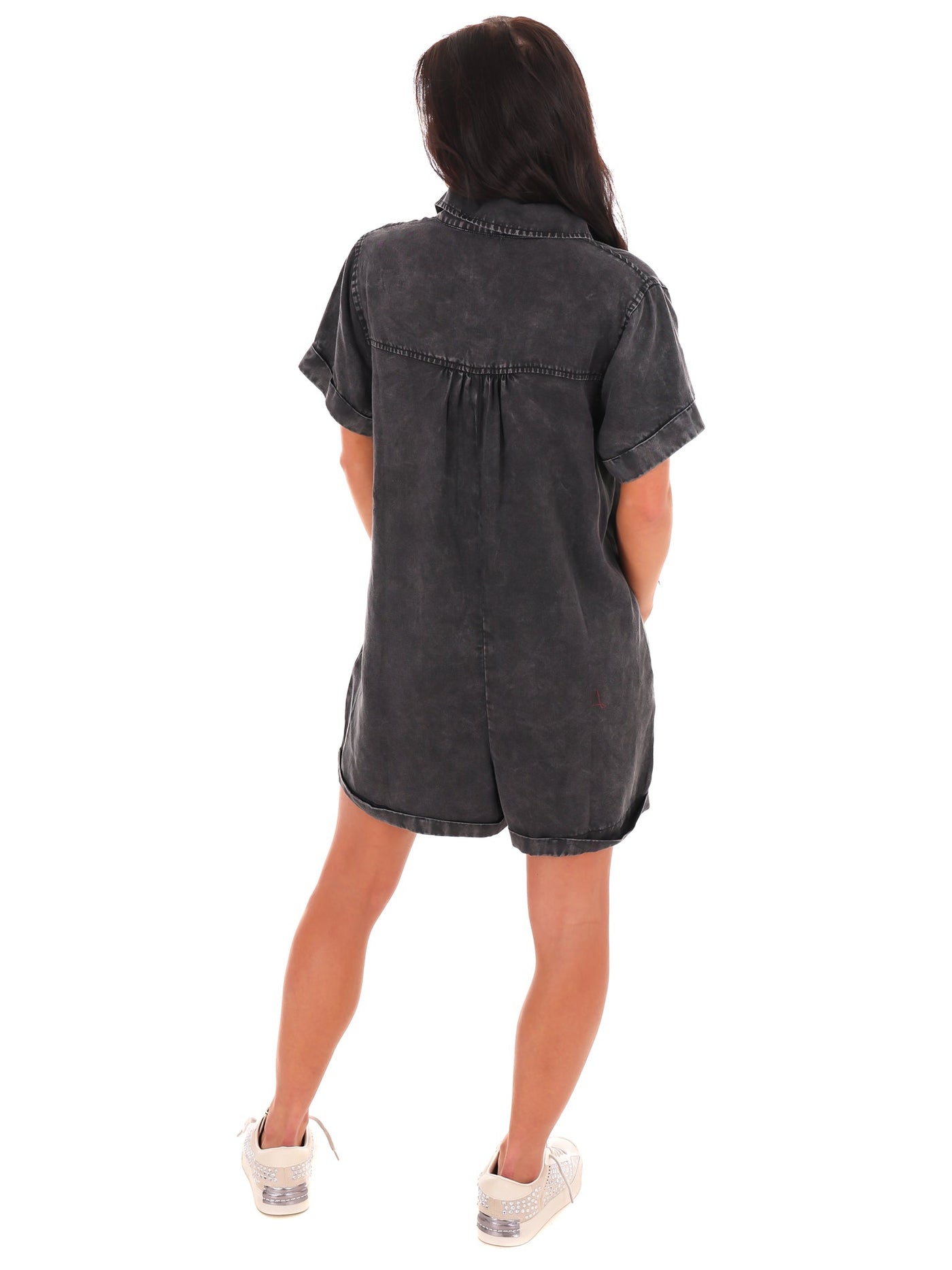 Introducing the Come to Me Denim Romper, made with washed Tencel denim and complete with pockets for all your essentials. Stay stylish and comfortable in this versatile piece.