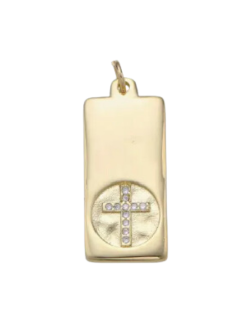 Add some sparkle to your style with our Cross Tag Charm! This gold filled tag is adorned with a stunning rhinestone cross, giving any outfit a touch of elegance. Perfect for everyday wear or special occasions, it's a must-have accessory for any fashion-forward individual.