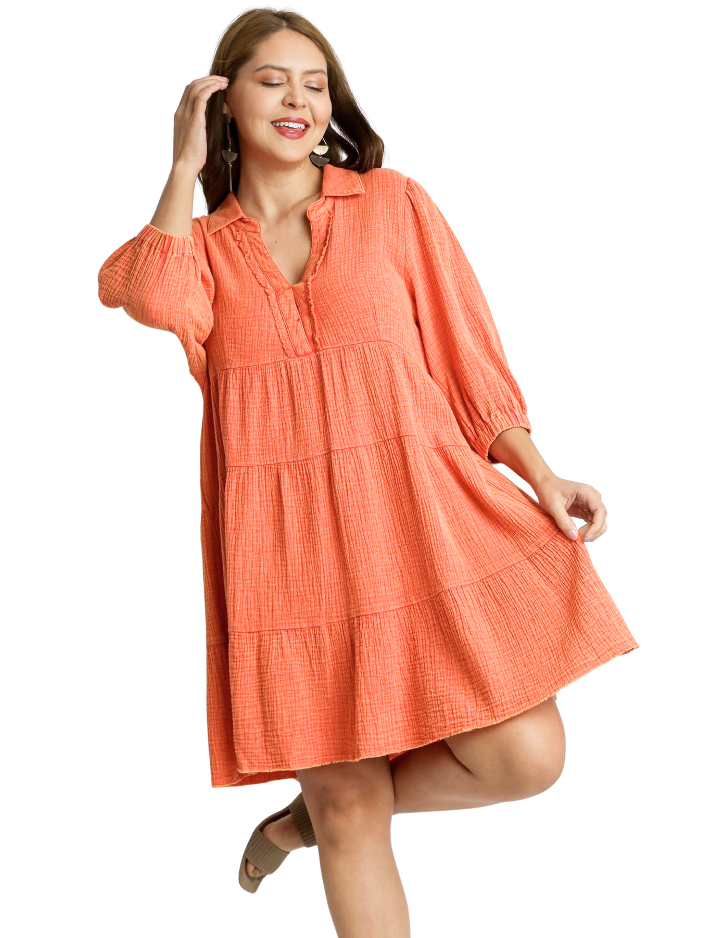 Get ready to turn heads in the Curvy Bring on the Noise Dress. Made with lightweight cotton gauze, this dress features a unique snow wash finish and an edgy unfinished frayed hem. Designed for Tennessee gameday, this dress is perfect for adding some playful attitude to your wardrobe. Dress to impress!