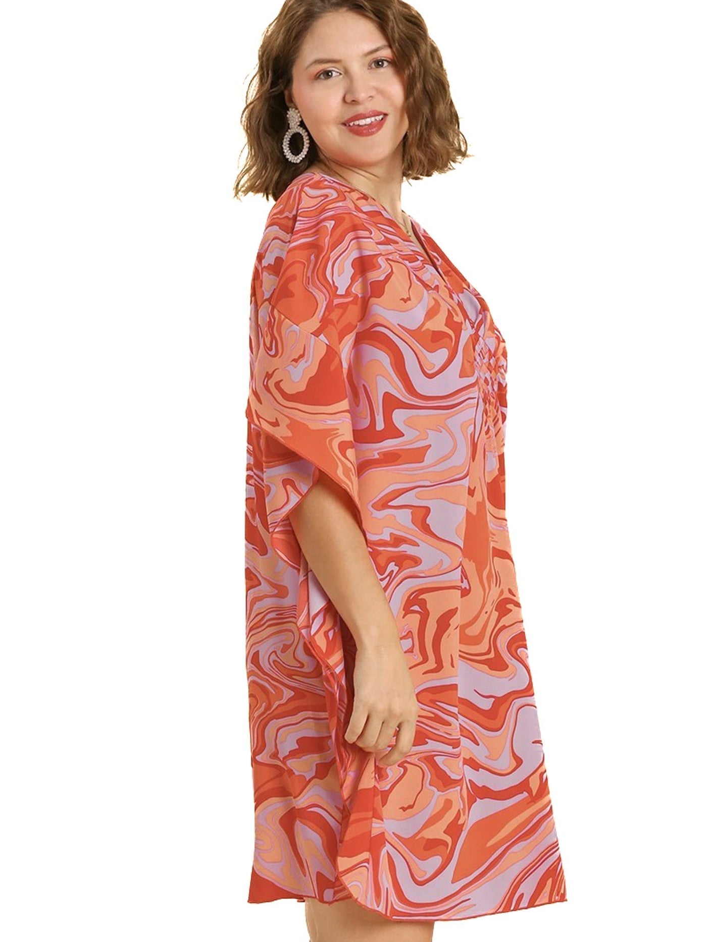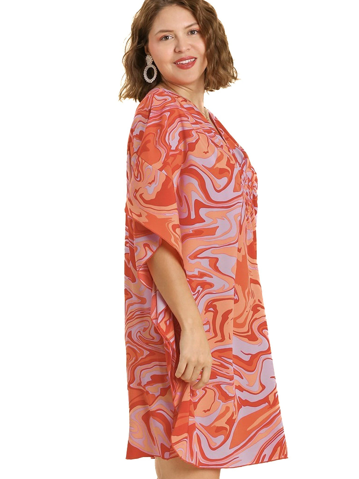 Take your wardrobe to new heights with the Curvy Making Friends Marble Print Dress. This stylish dress features a gorgeous marble print and a flattering v-neckline—perfect for every occasion. With its unique batwing sleeves and unlined design, you'll look fabulous and stay comfortable all day long.