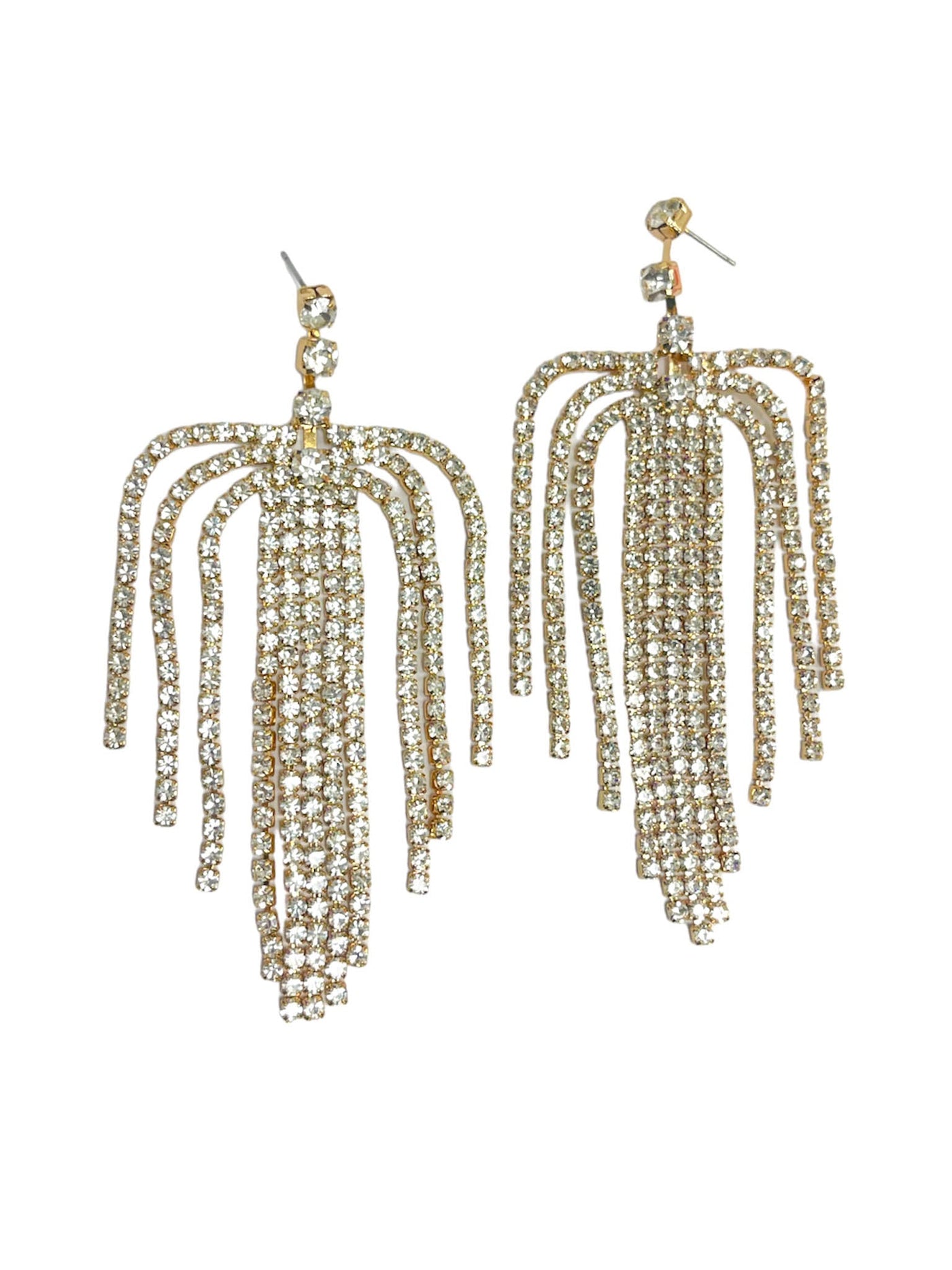 Shine in these Dangle Rhinestone Earrings! With their playful fringe design, they'll add some fun to any outfit. Plus, the rhinestones will add a touch of glamour to your look. You'll be sure to turn heads (and maybe even twist some necks) with these quirky and sparkling earrings.