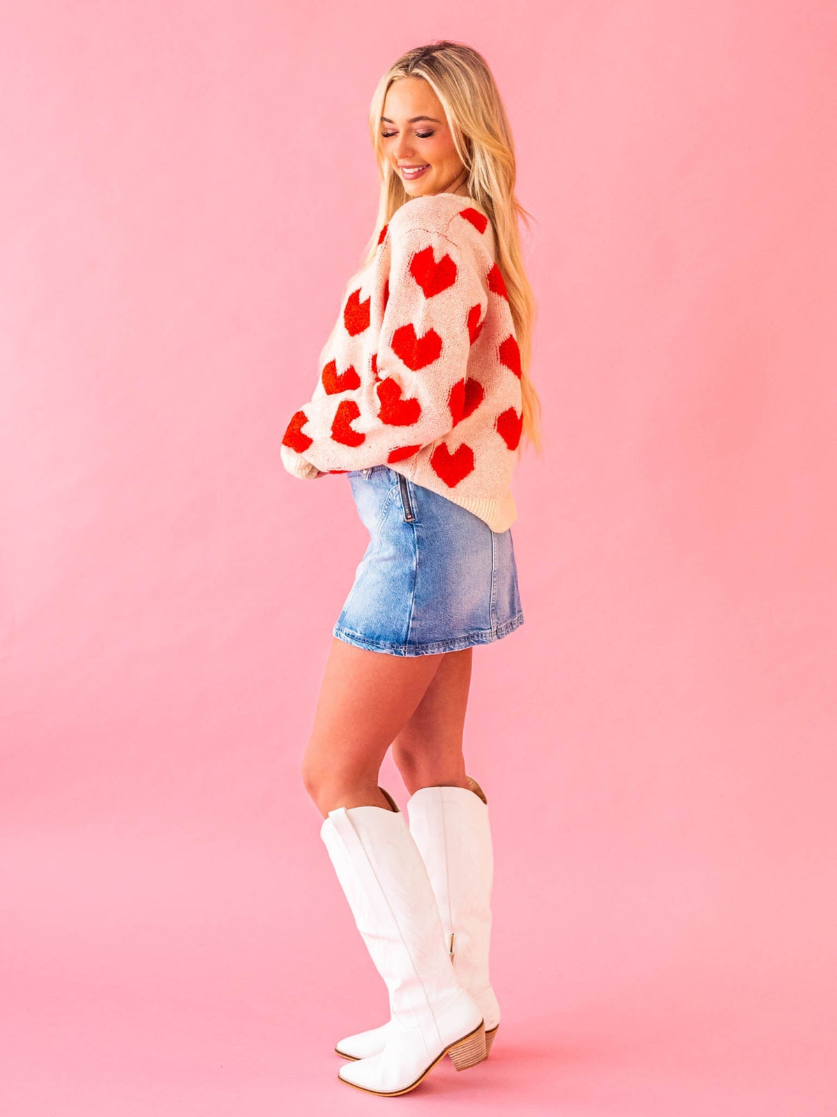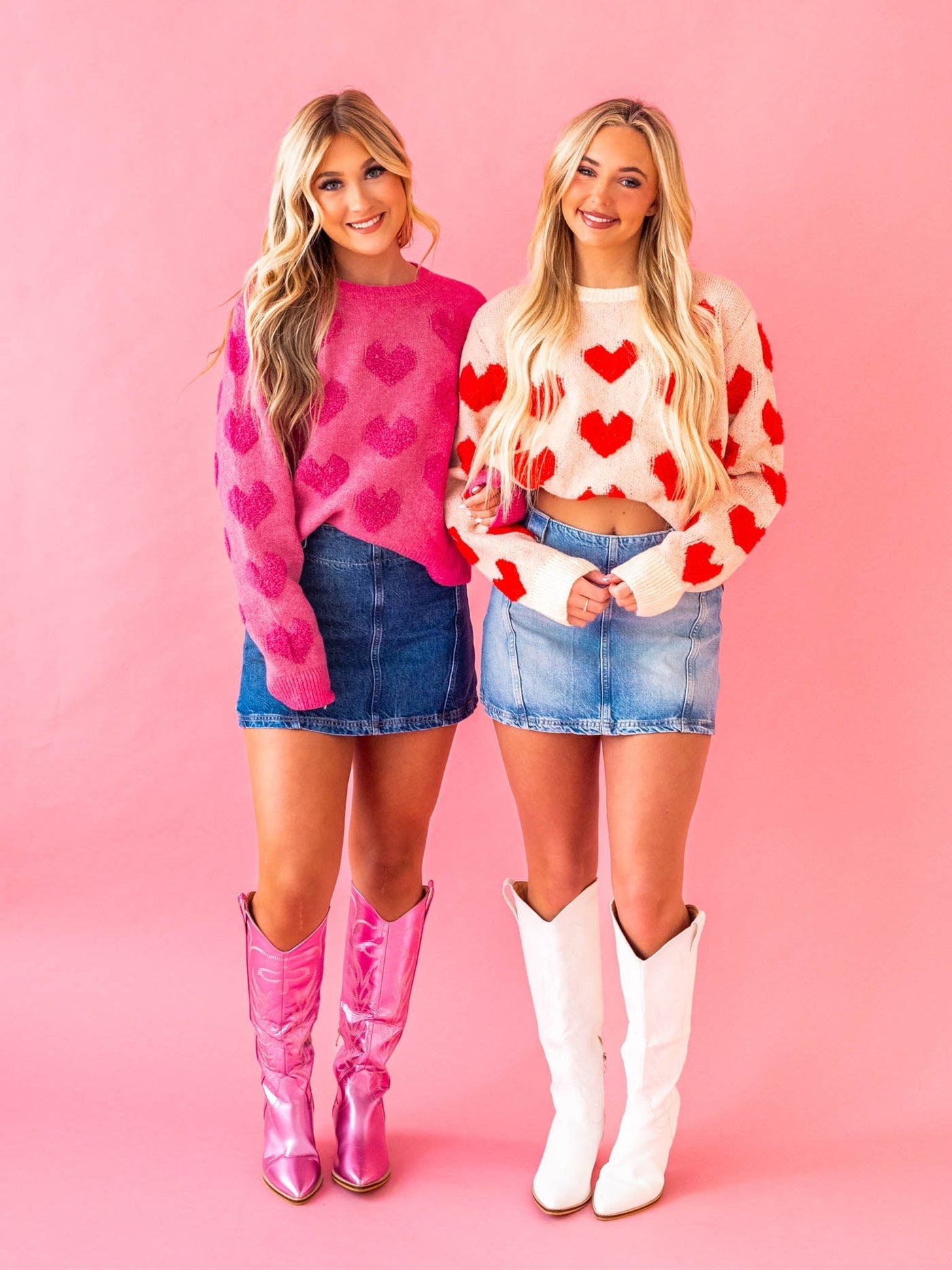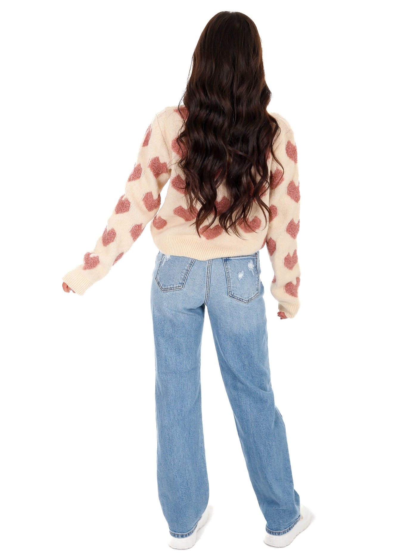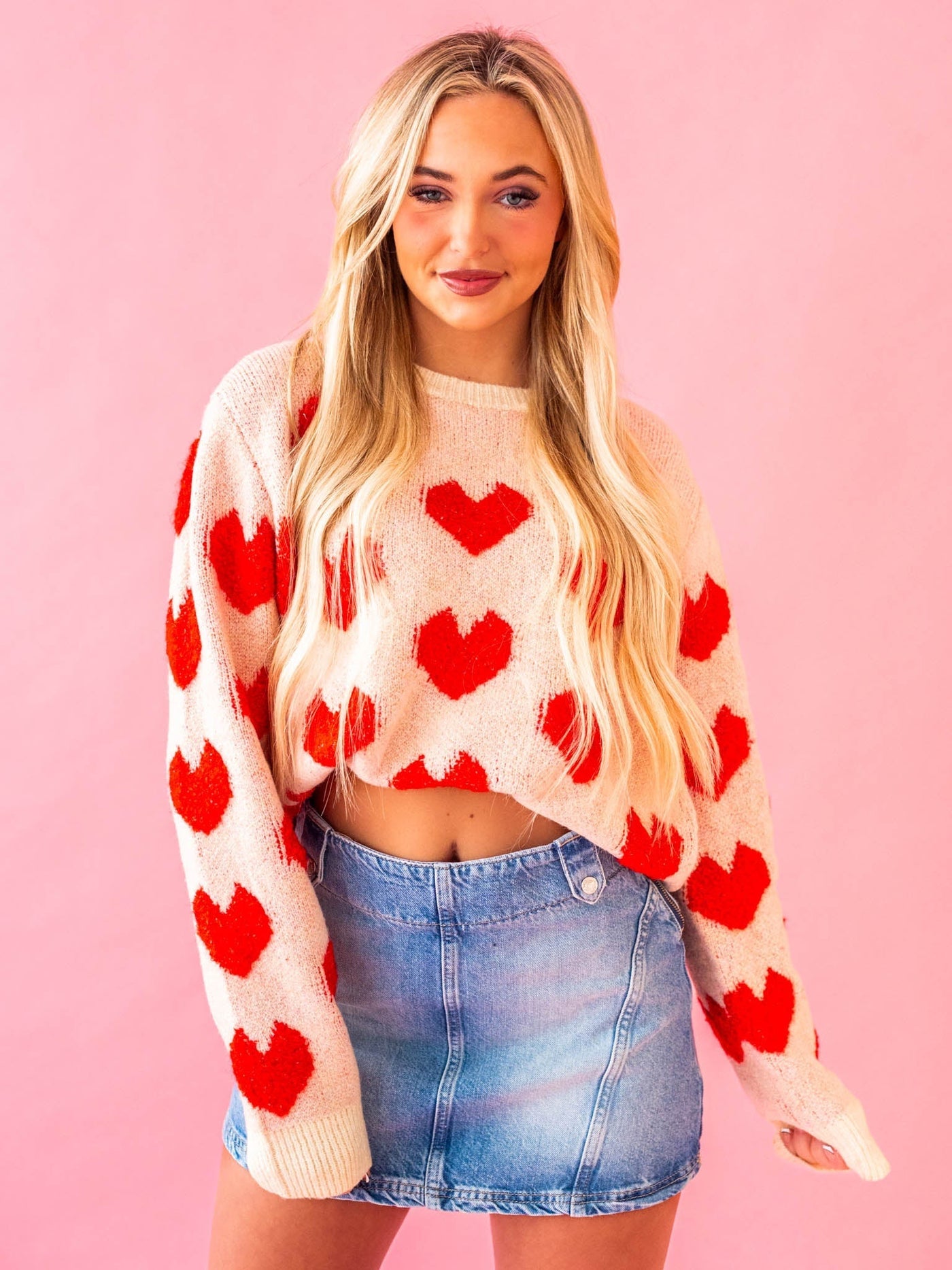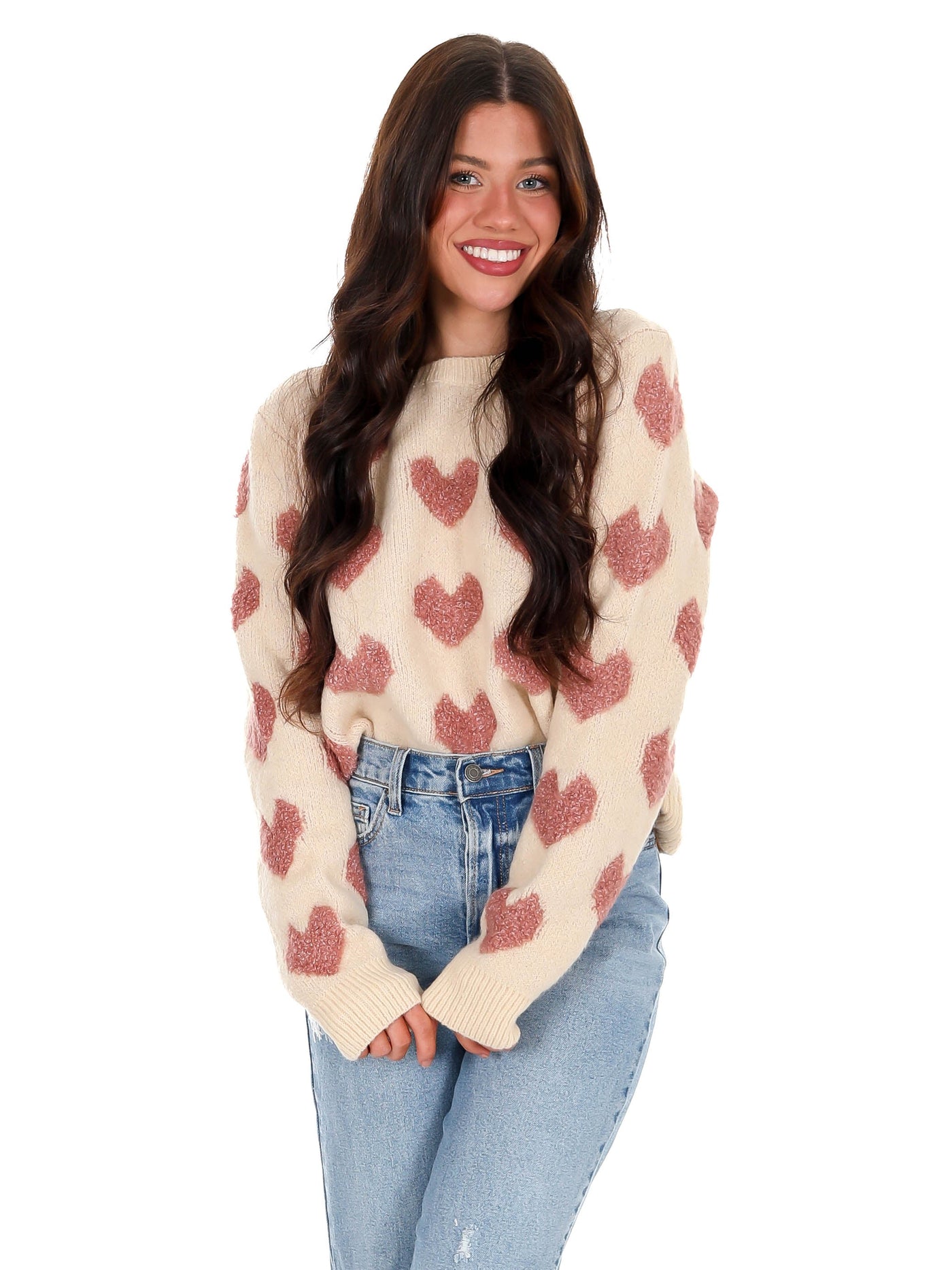 Let your heart (sweater) do the talking with our Listen to Your Heart Sweater. Its thick, cozy, and fuzzy material will keep you warm while its slight oversize crop fit adds a touch of playfulness. Perfect for those casual days where you want to be stylish and comfortable.