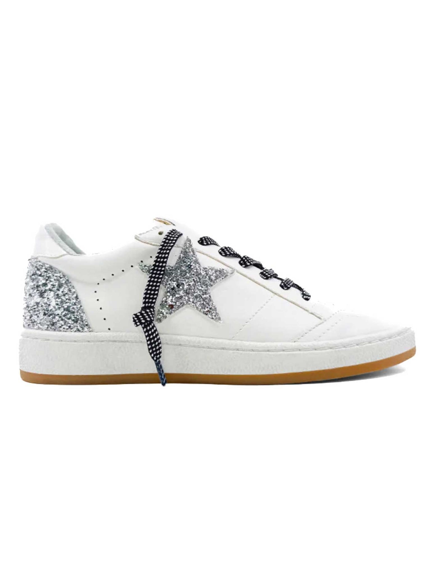 PAZ is one of our favorite must-have retro sneaker, with a low top upper body crafted in faux leather and glitter in contrasting white and silver accents. These look amazing paired with shorts, cropped jeans and dresses.