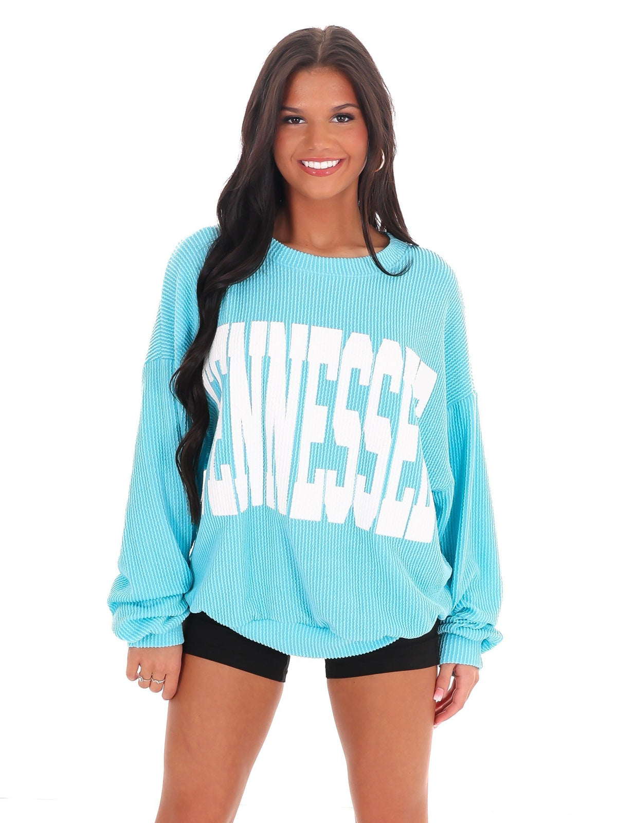 Tennessee Ribbed Oversized Pullover - Ocean Blue / S