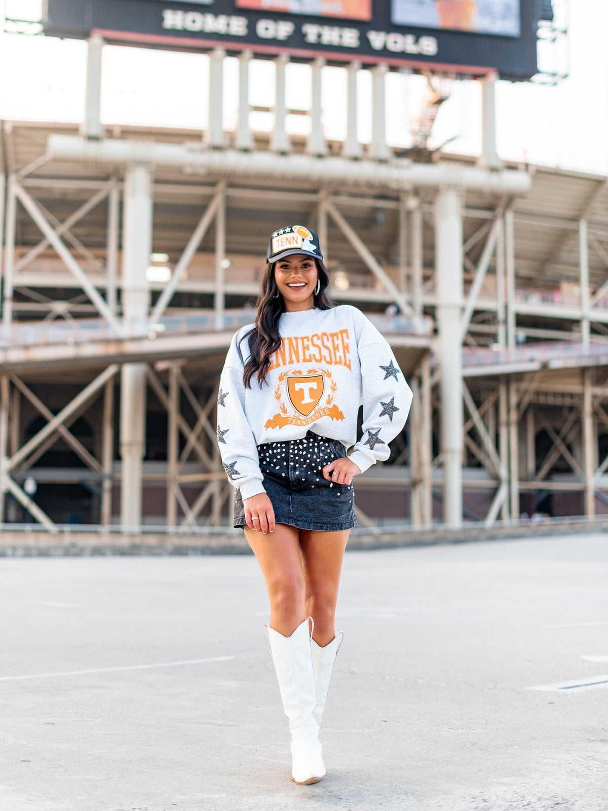 Be the ultimate Tennessee fan with our All-Star Embellished Sleeve Crewneck Pullover! A quirky and playful way to show your team pride, this pullover features unique embellished sleeves and a cozy crewneck design. Perfect for game day or any casual outing, make a statement with this one-of-a-kind piece. Go Vols!