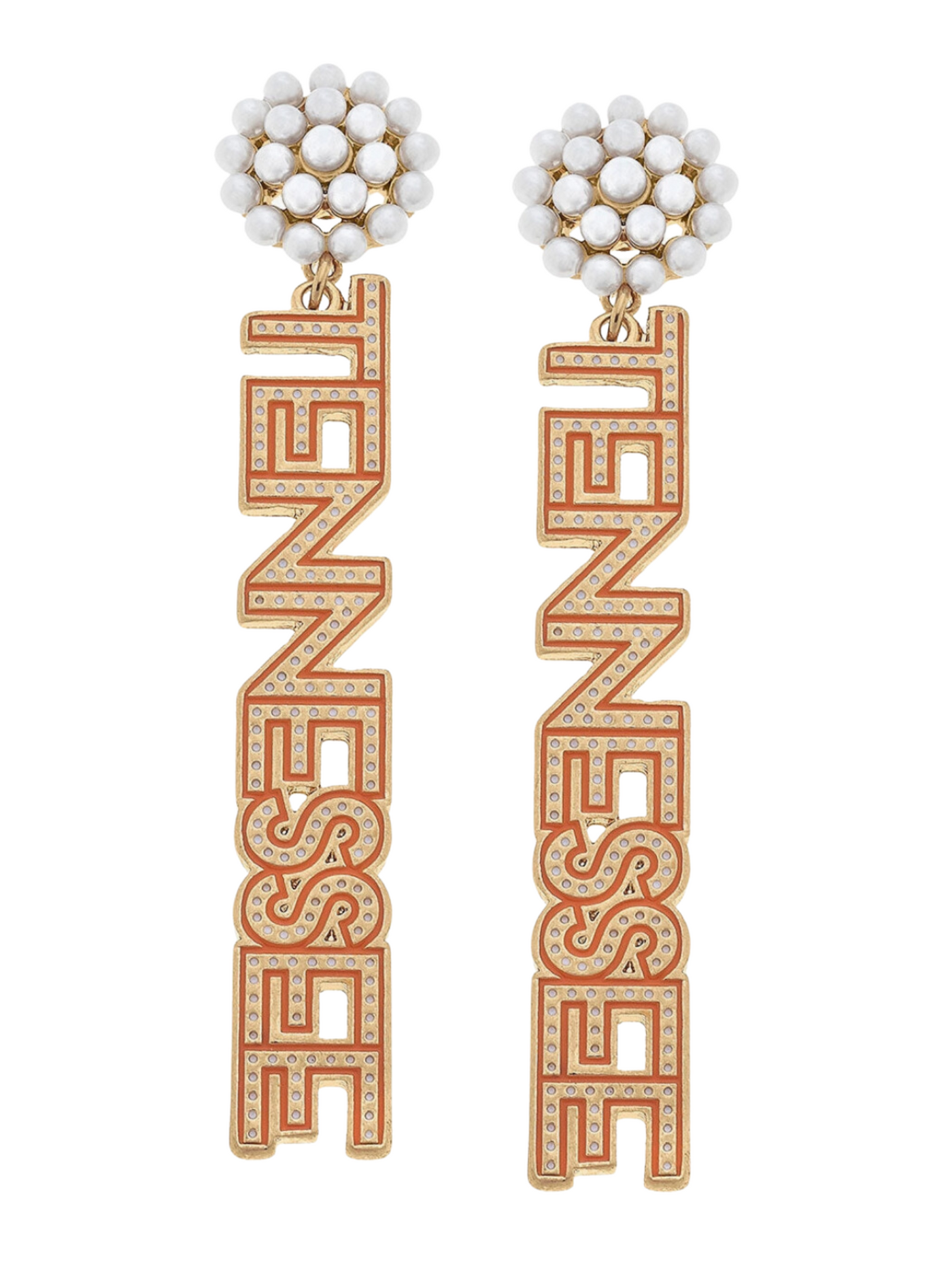 Accessorize your game day look with these University of Tennessee drop earrings. The “Tennessee” earrings are perfect for making a statement while showing off your team spirit with pearl embellishments and block letters!