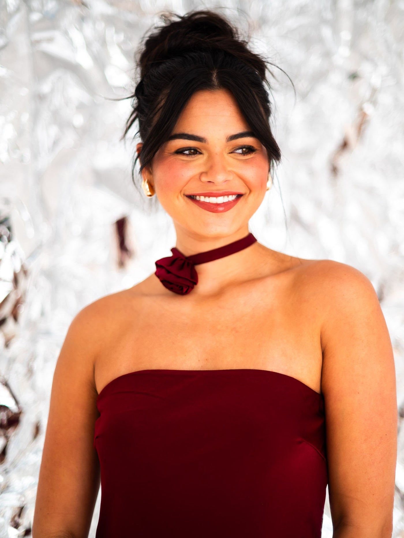 Be the life of the party in our Throwback Corsage Choker Satin Mini Dress. Featuring a playful corsage choker and self tie cut out details at the back, this dress is sure to turn heads. Get ready to dance the night away in this quirky and fun dress!