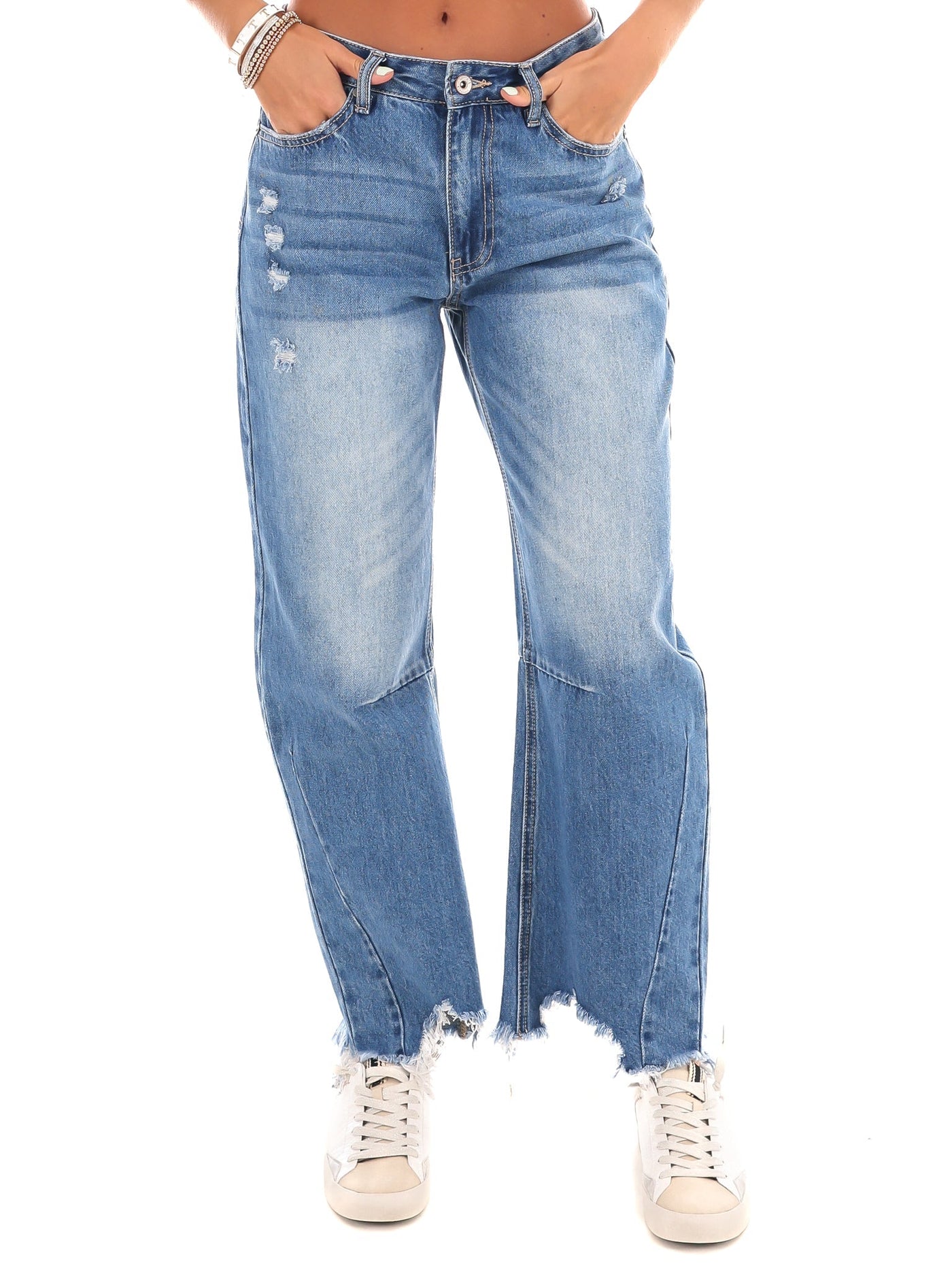 Unleash your inner rebel with our Urban Rebel High Rise Distressed Barrel Jeans. These jeans feature a high-rise waist to flatter your figure and unique distressed details for added edge. Perfect for standing out in a crowd and making a bold statement.