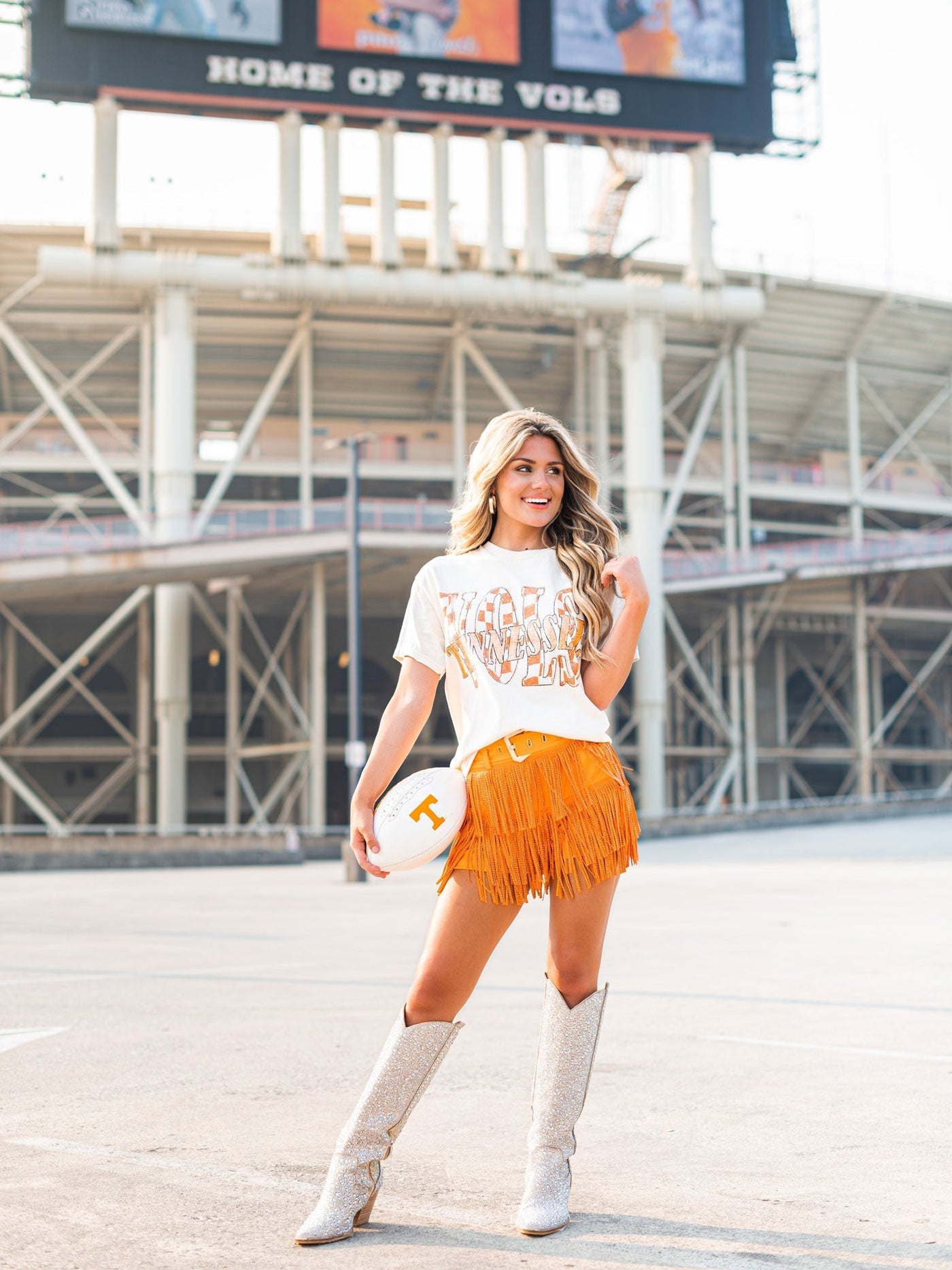 Look your best while supporting your favorite team in this officially licensed Volunteers Twisted Check Thrifted Tee. With its unique checkered graphic, this thrifted tee adds a fun, quirky twist to your game day wardrobe. Go VOLS!