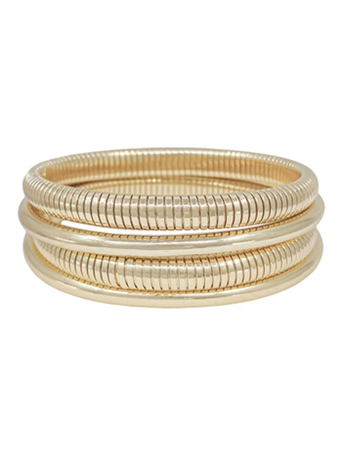 Water Resistant Ribbed Bangle Bracelet - Gold / OS