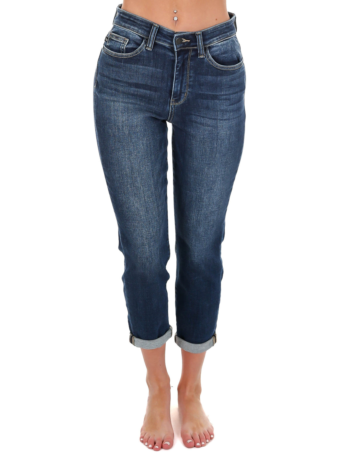 Where You Are High Rise Cuffed Jeans - Dark / 0