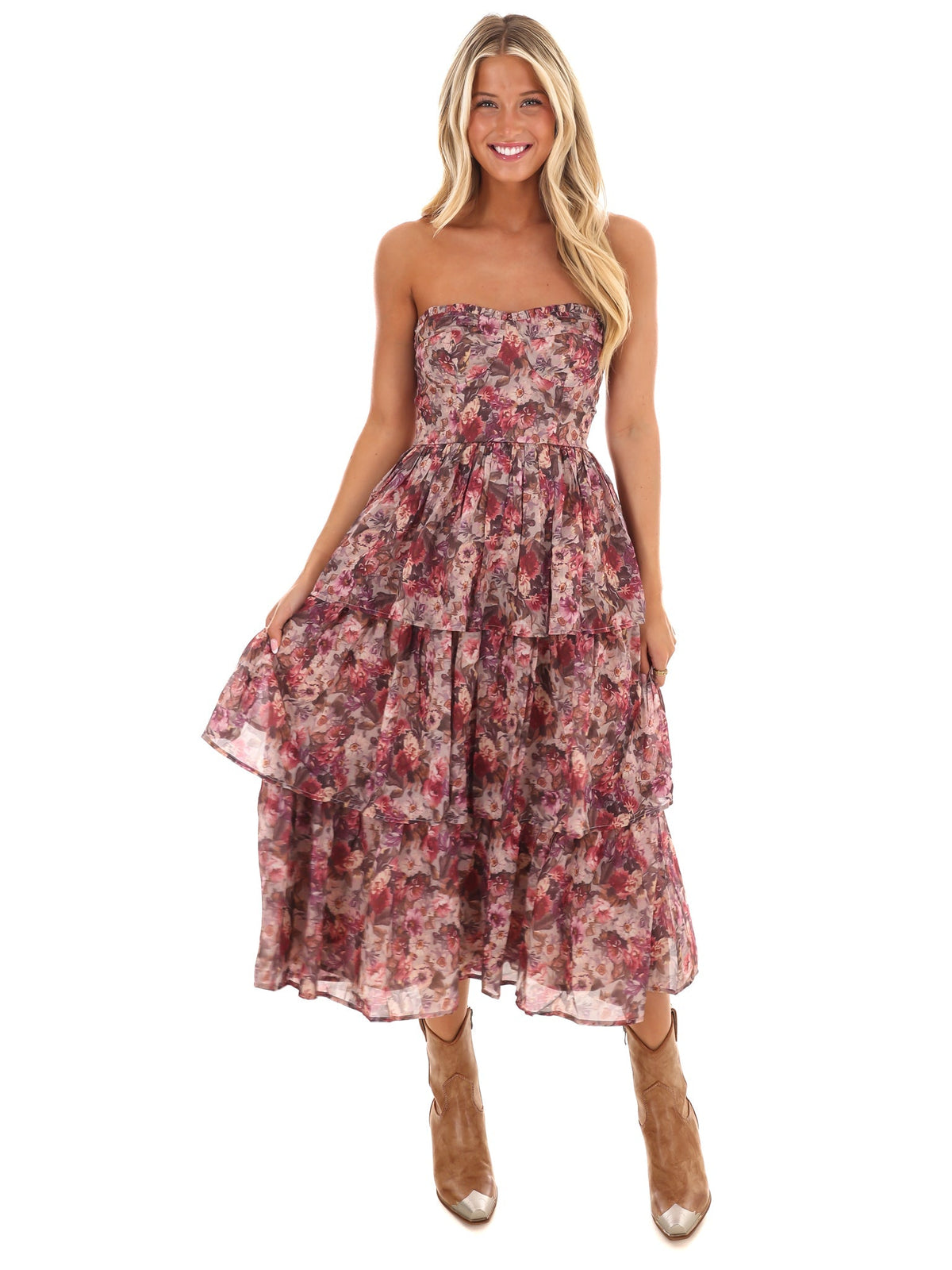 Indulge in some playful charm with our Whimsical Wildflower Ruffle Midi Dress. Featuring a gorgeous floral print, this dress is designed with a flattering tiered hemline and ruffle details. Perfect for any occasion, this dress adds a touch of whimsy to your wardrobe.