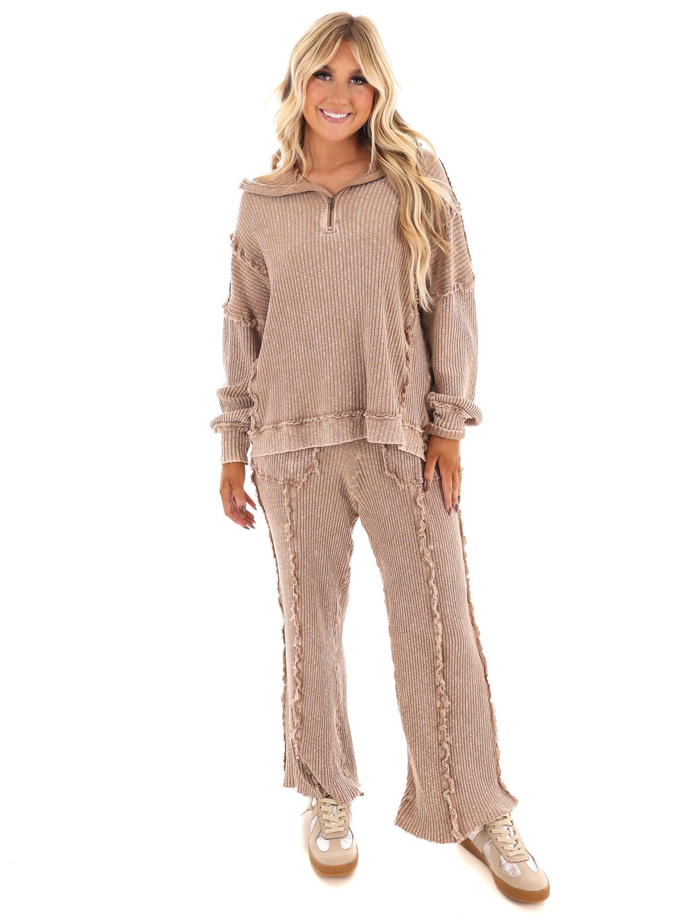 Worn-In Comfort Ribbed Zip Up Pullover - Mocha / S
