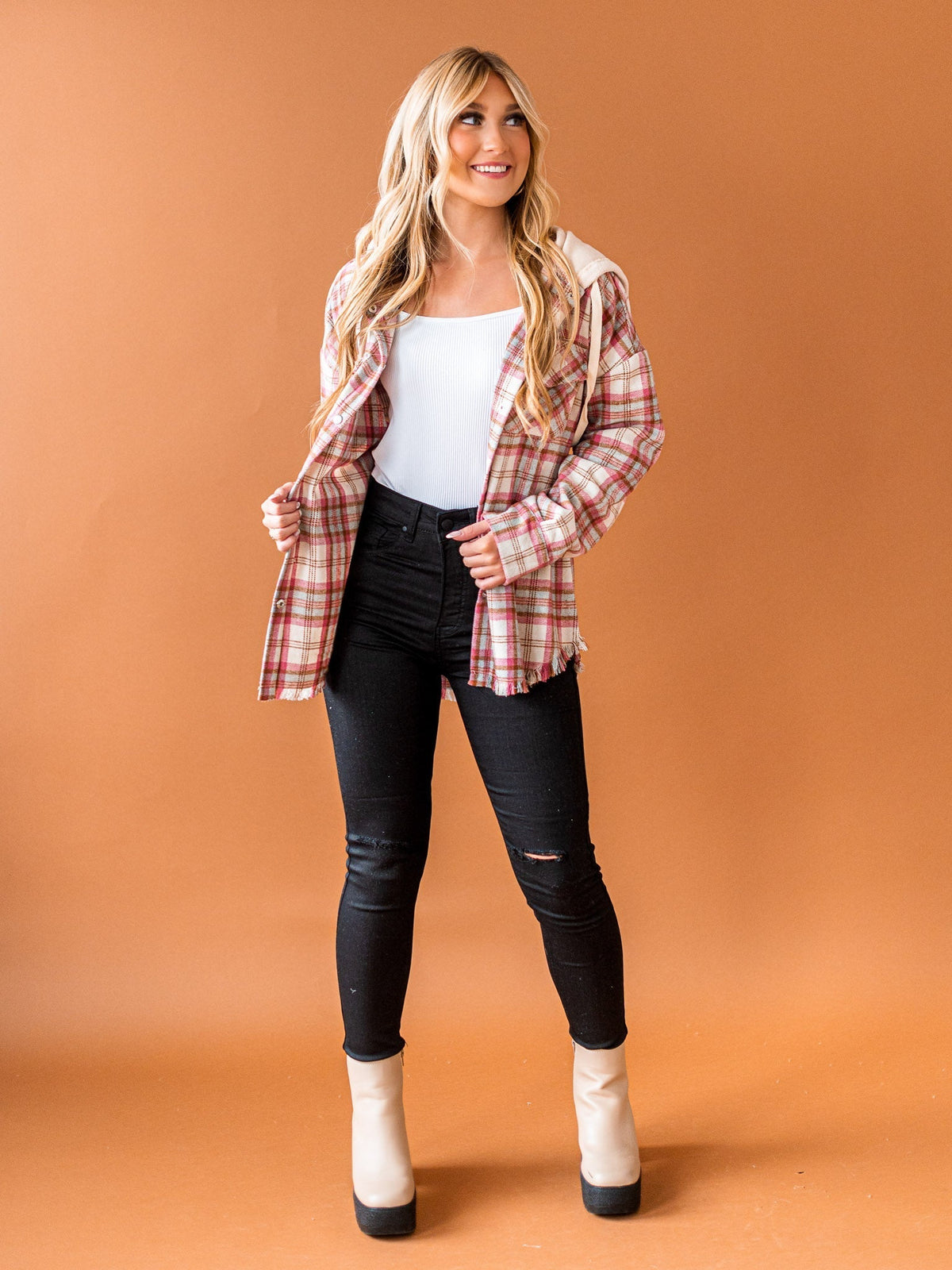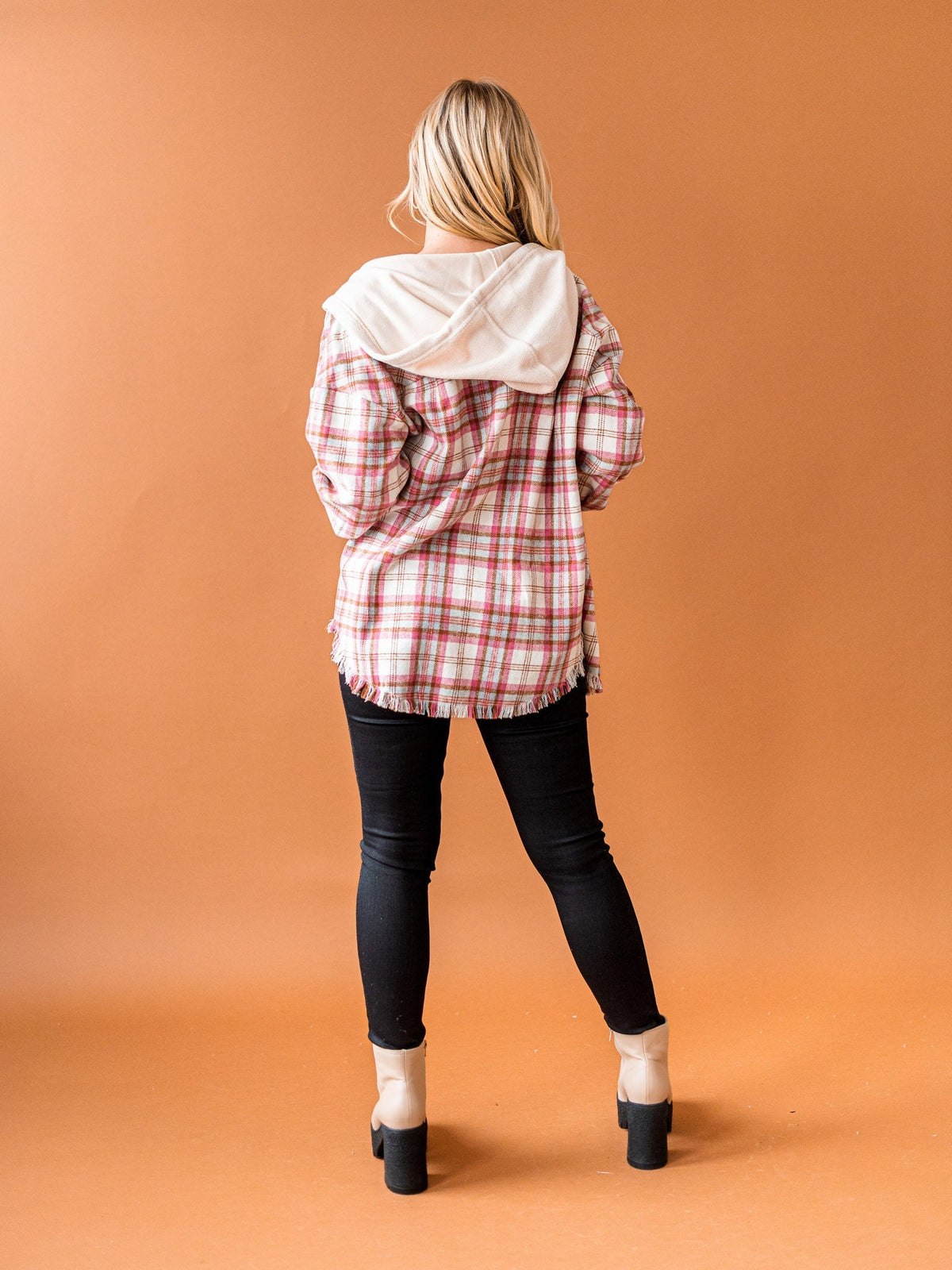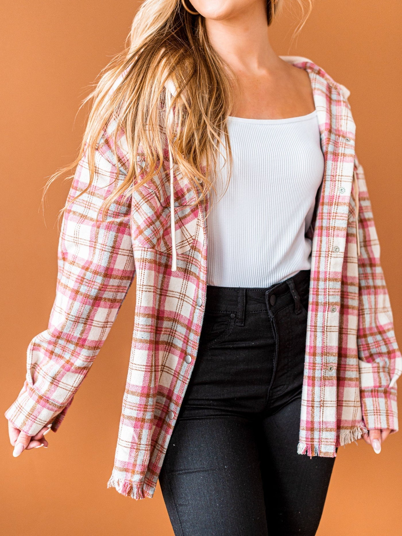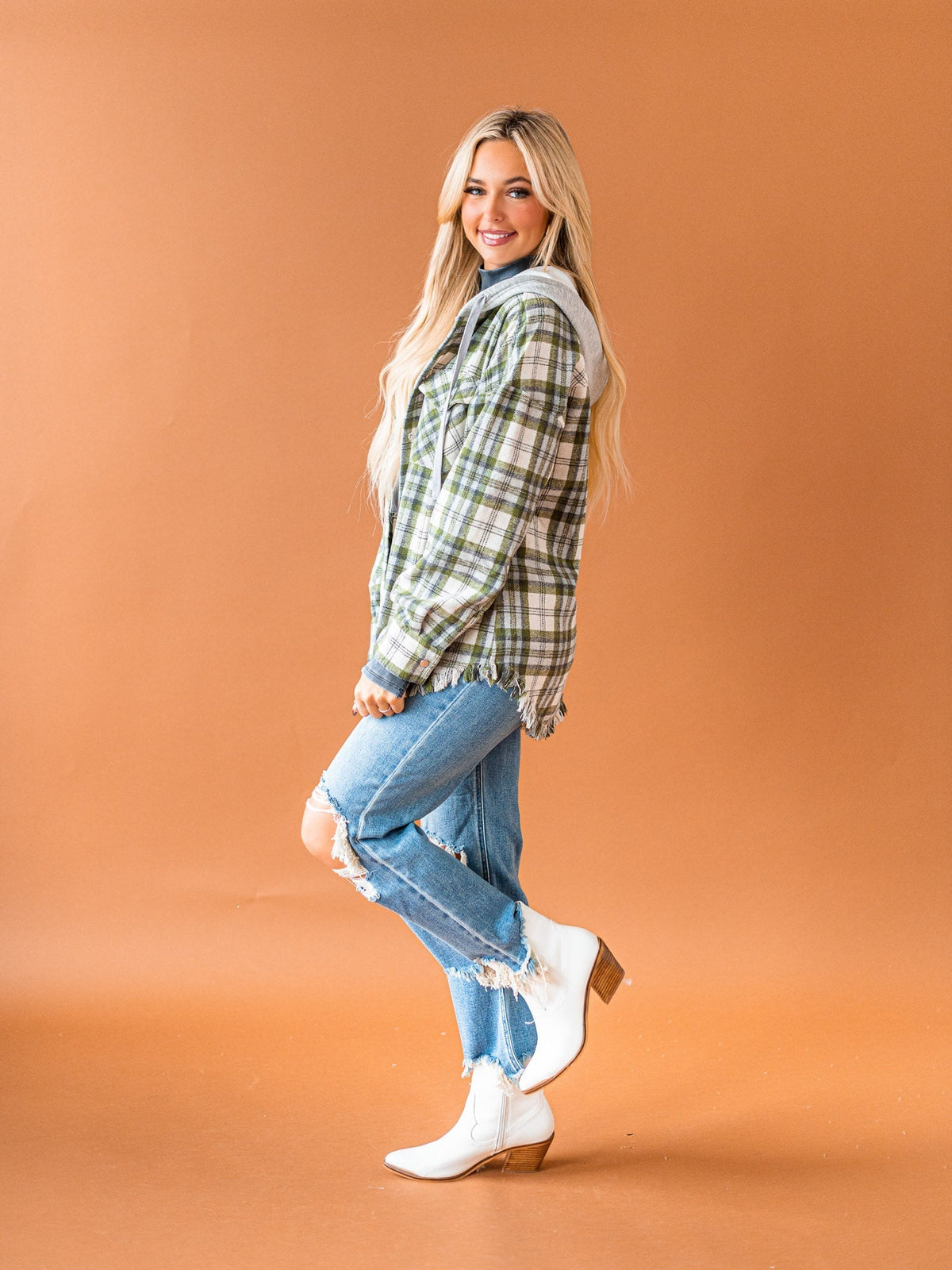 Worth Your While Hooded Plaid Top - Charcoal / S
