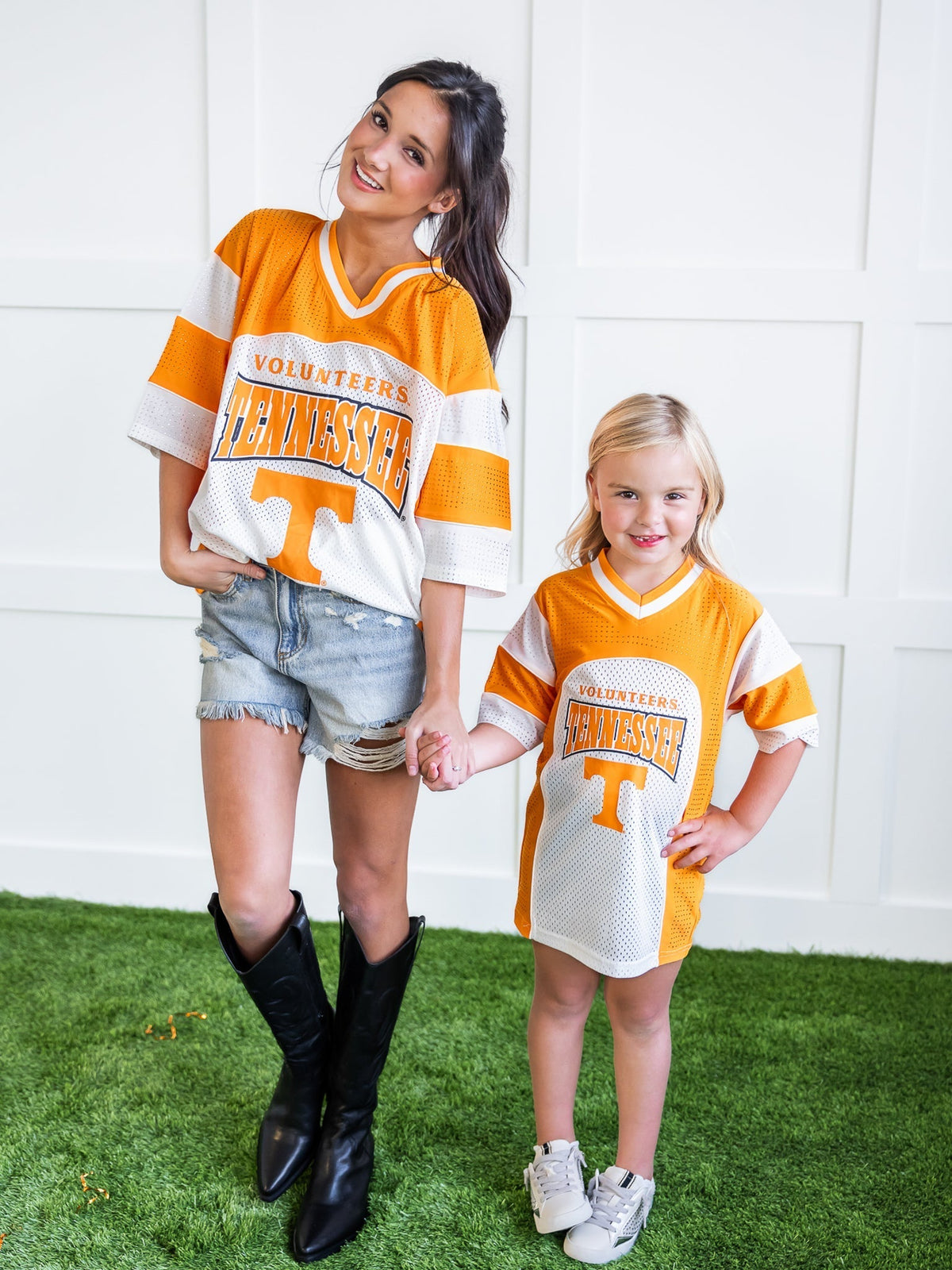 Youth Rhinestone Overlay V-Neck Football Jersey Dress