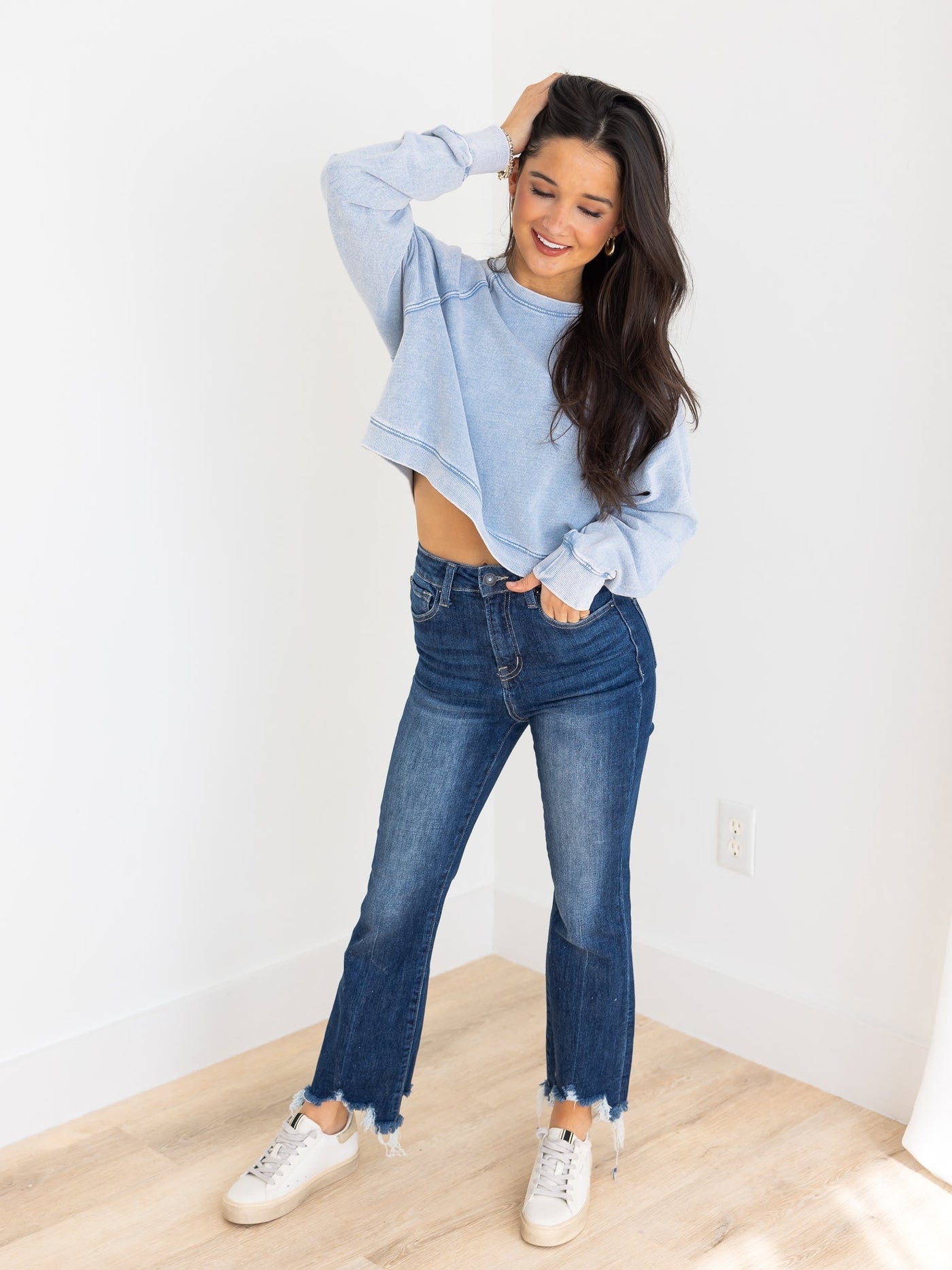 Z Supply Crop Out Knit Denim Sweatshirt - Washed Indigo / XS